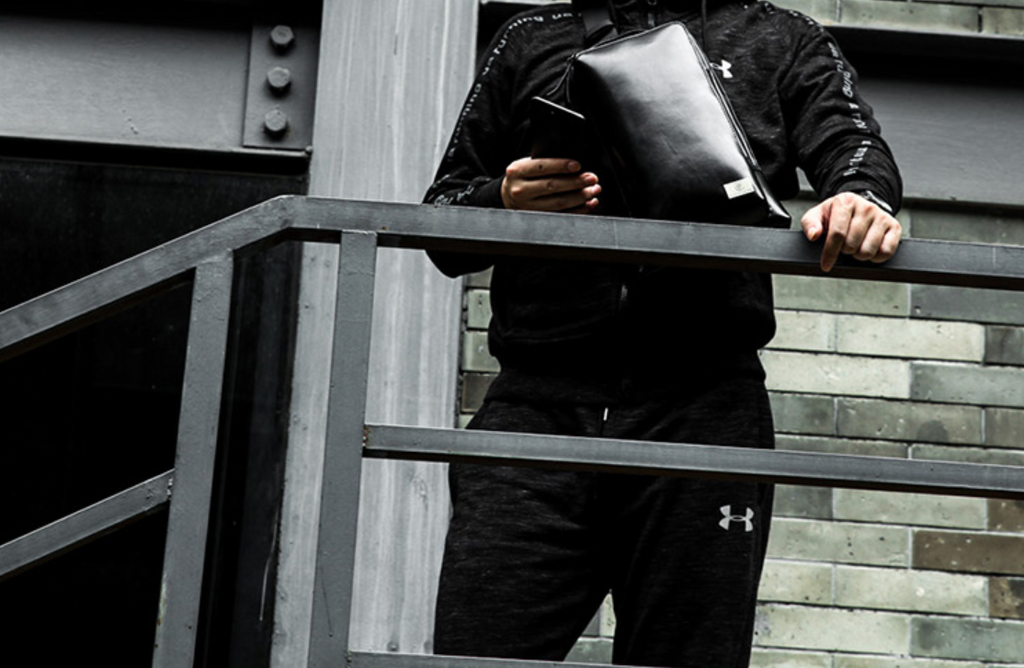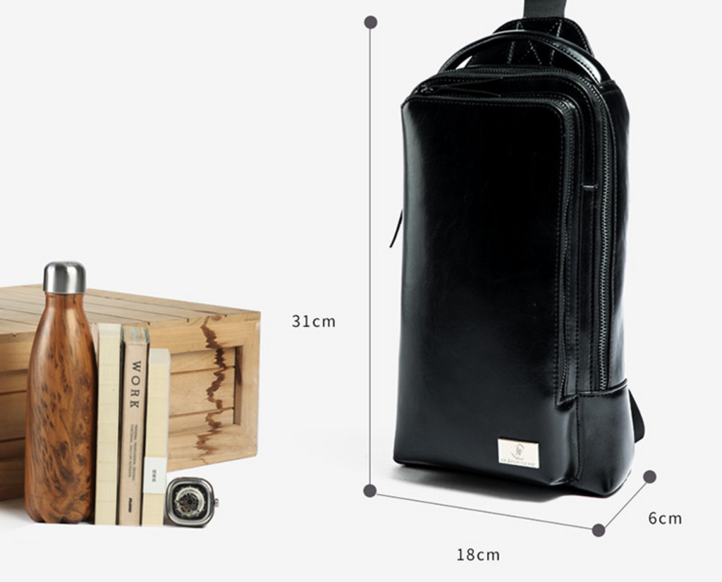 Design: Cool Leather Men's Black Sling Bag One Shoulder Backpack Chest Bag For Men