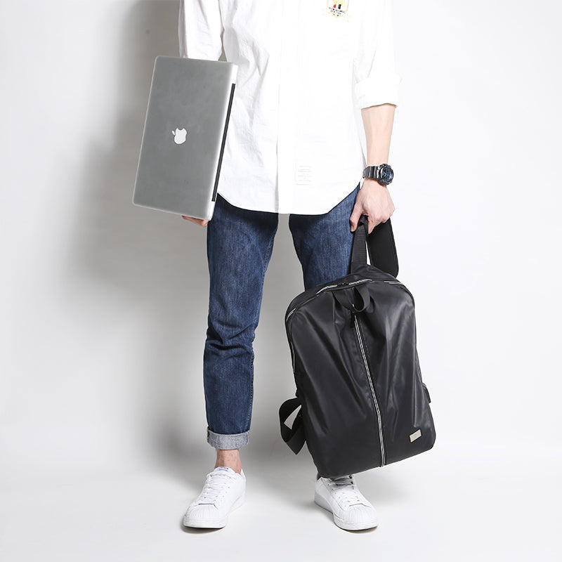 Style: Cool PVC Water Repellent Fabric Men's Black Travel Backpack Large 15.6'' Backpack Laptop Backpack For Men