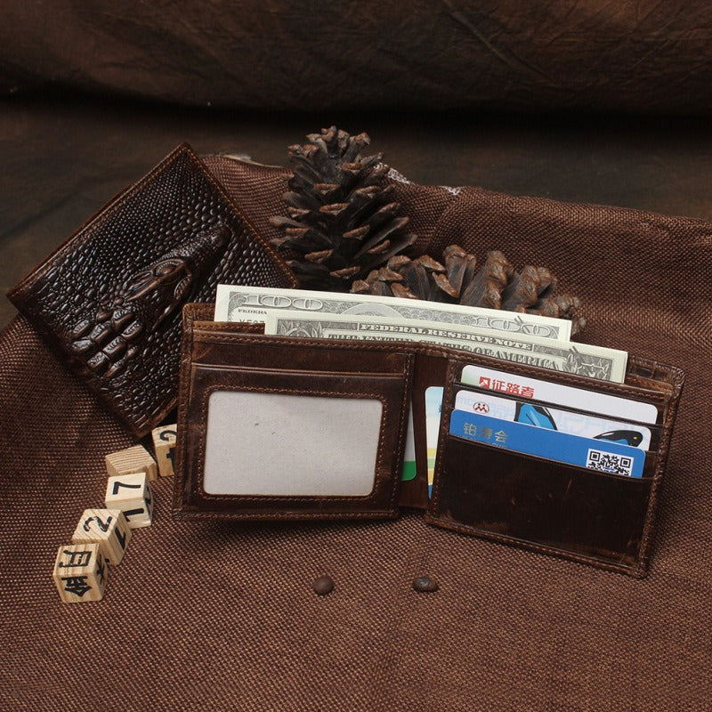 Style: Cool Coffee Leather Billfold Crocodile Pattern Leather Mens Small Wallet For Men