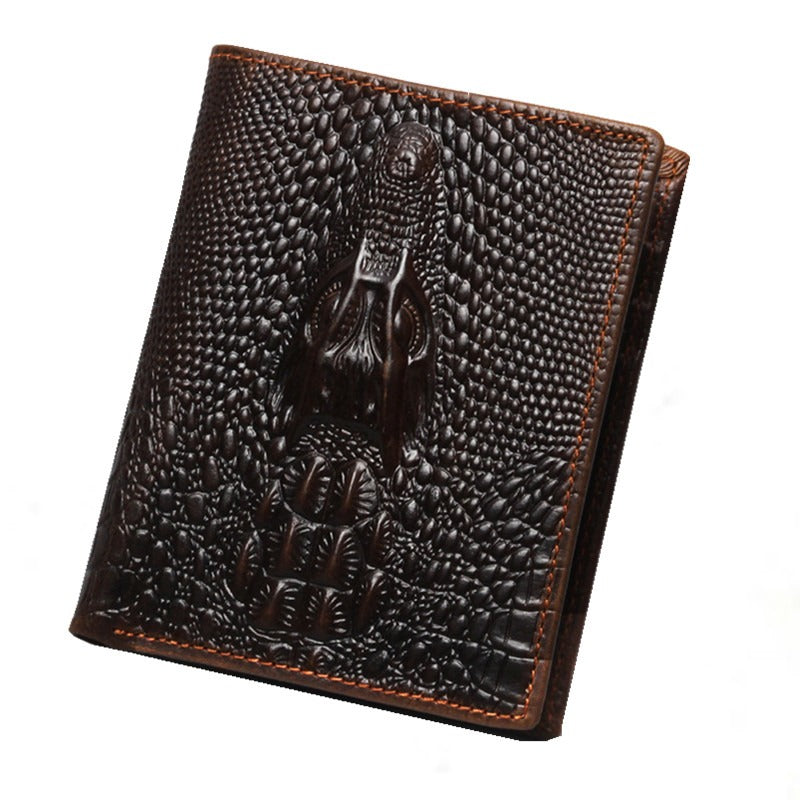 Design: Cool Coffee Leather Billfold Crocodile Pattern Leather Mens Small Wallet For Men