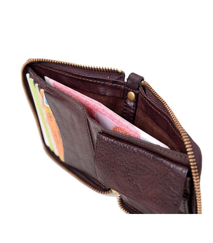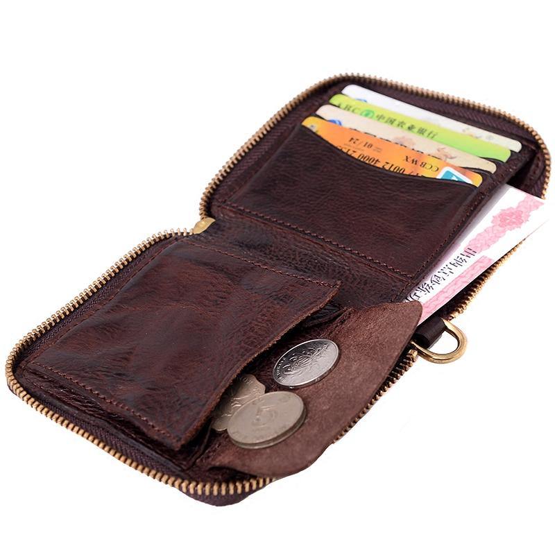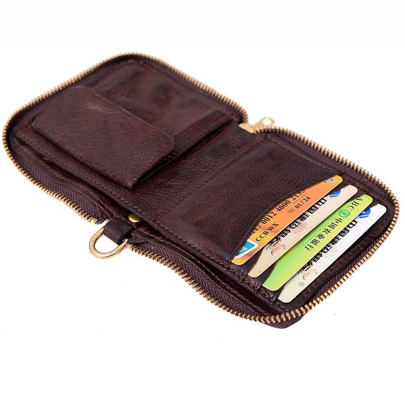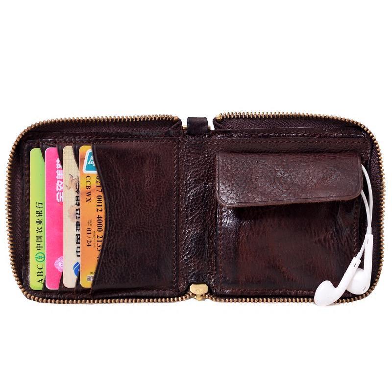 Design: Cool Coffee Leather Mens billfold Horizontal Wallet Front Pocket Bifold Wallet Earphones Wallet For Men