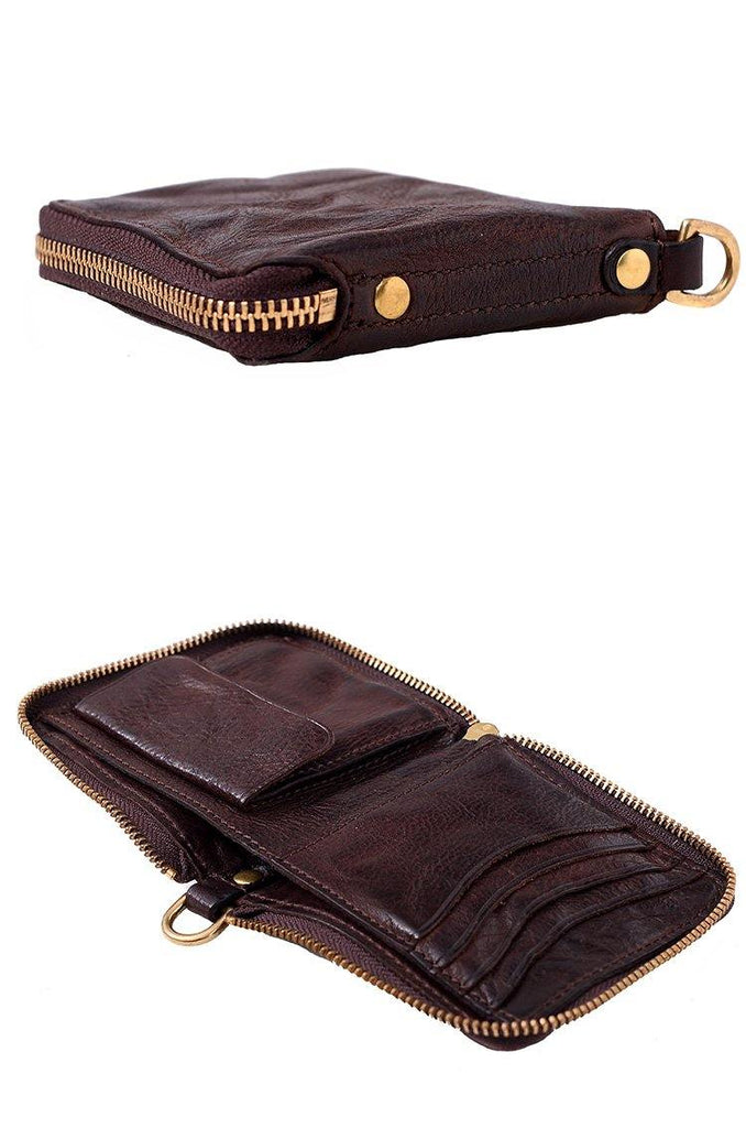 Style: Cool Coffee Leather Mens billfold Horizontal Wallet Front Pocket Bifold Wallet Earphones Wallet For Men