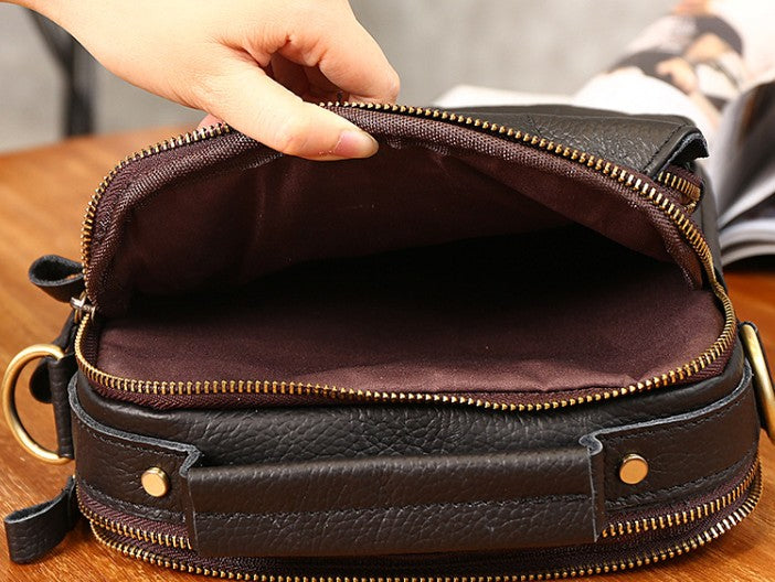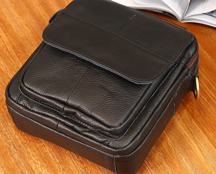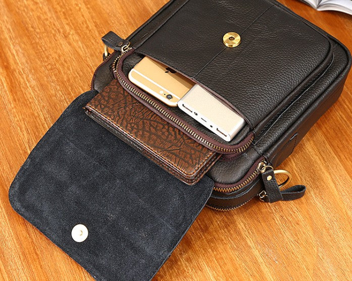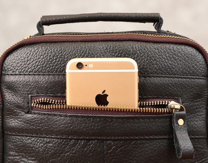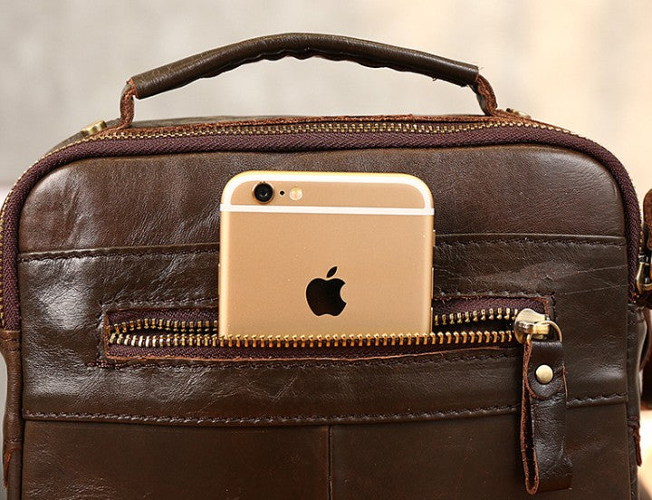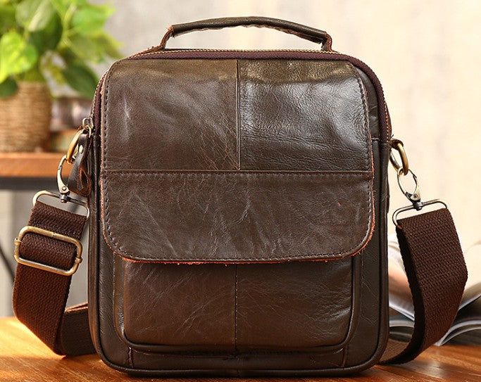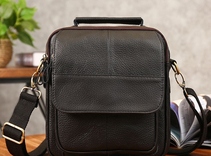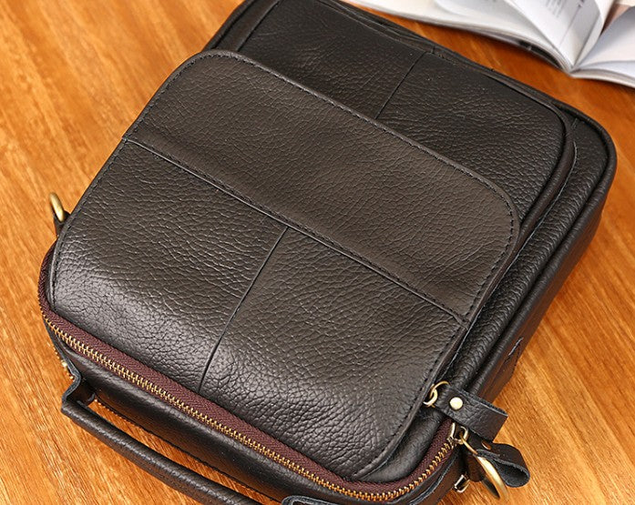 Design: Cool Coffee Small Leather Mens Side Bag Messenger Bag Shoulder Bag for Men