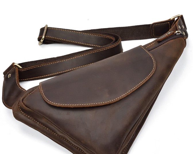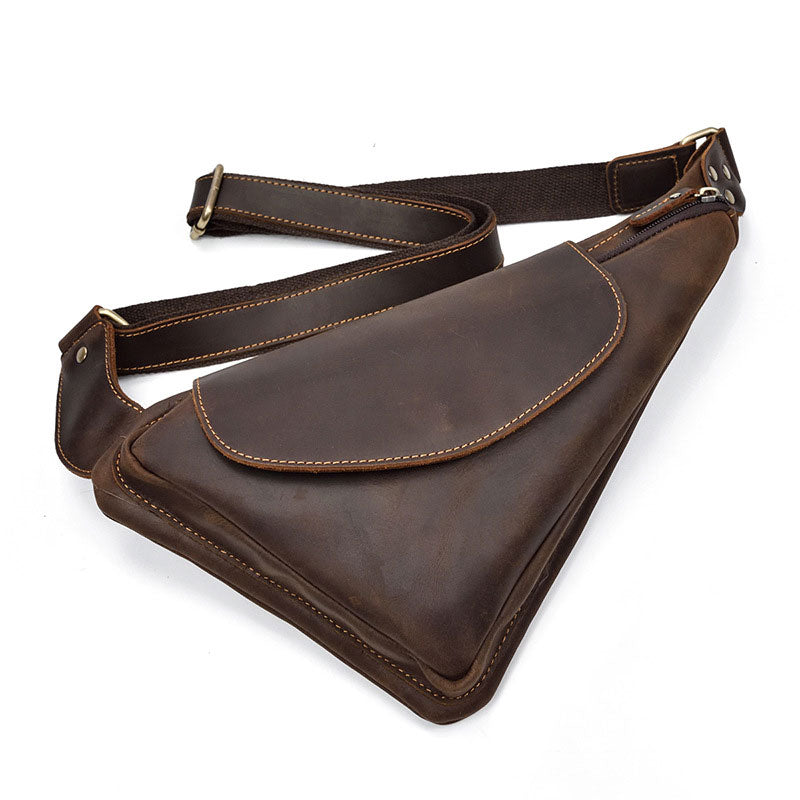 Design: Cool Triangular Leather Mens Sling Bag Chest Bag Sling Crossbody Bag One Shoulder Backpack For Mens