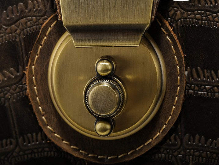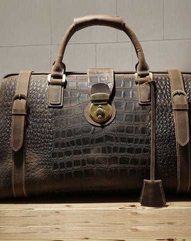 Design: Cool Dark Brown Leather Men Alligator Pattern Doctor Bag Travel Bags Weekender Bags For MenOverview: