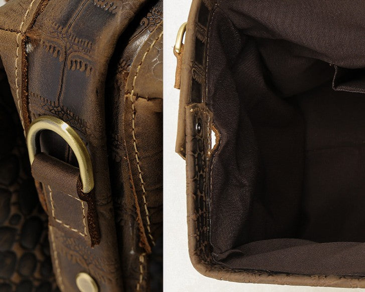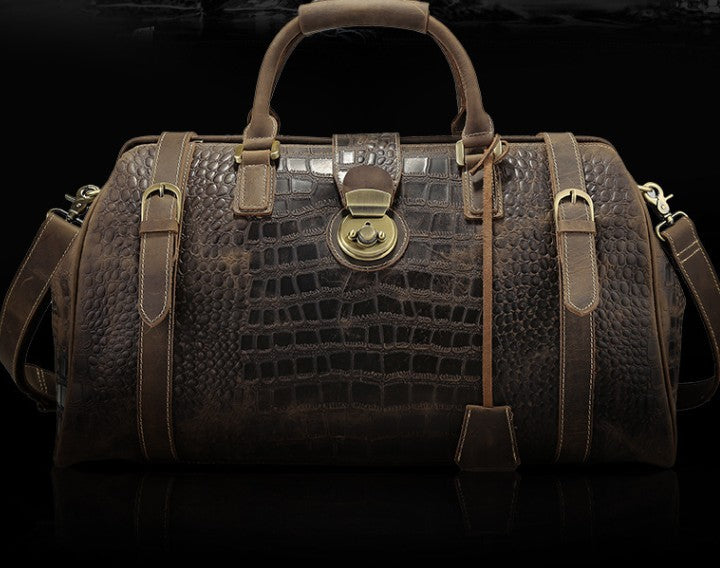 Design: Cool Dark Brown Leather Men Alligator Pattern Doctor Bag Travel Bags Weekender Bags For Men