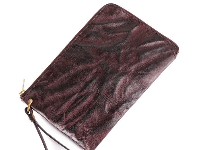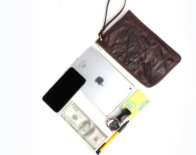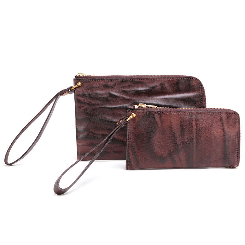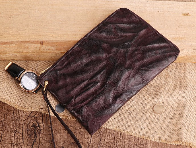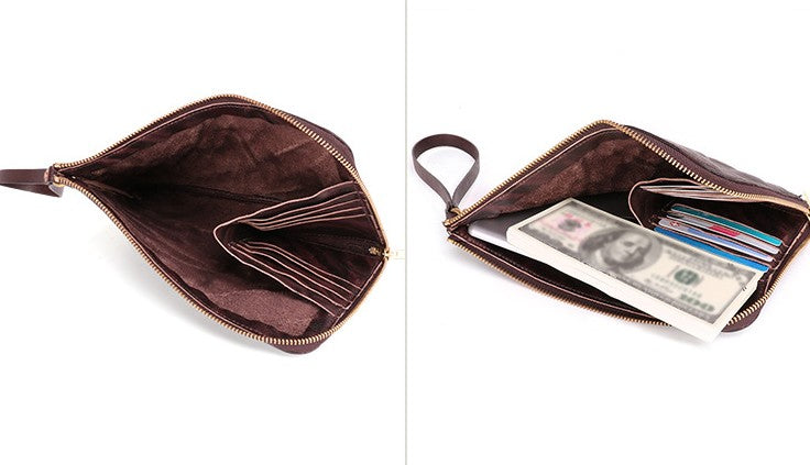 Design: COFFEE Small MENS LEATHER SLIM ZIPPER CLUTCH WRISTLET PURSE BAG CLUTCH BAG FOR MEN