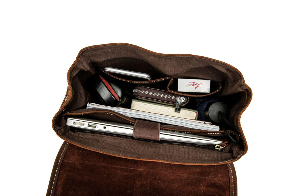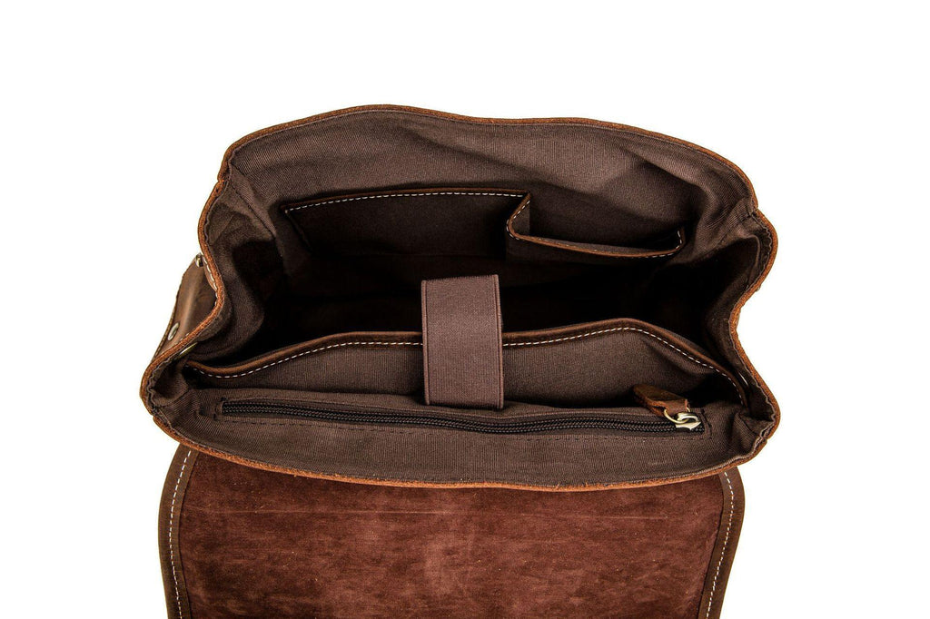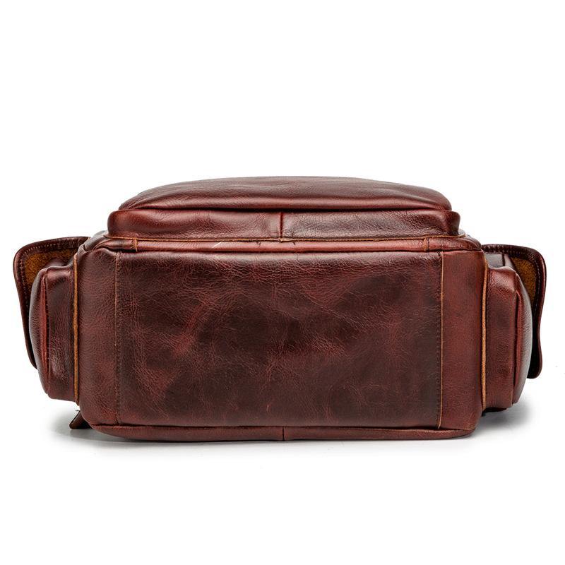 Design: Cool Dark Brown Mens Leather College Backpack Laptop Backpack Red Brown Travel Backpack for Men