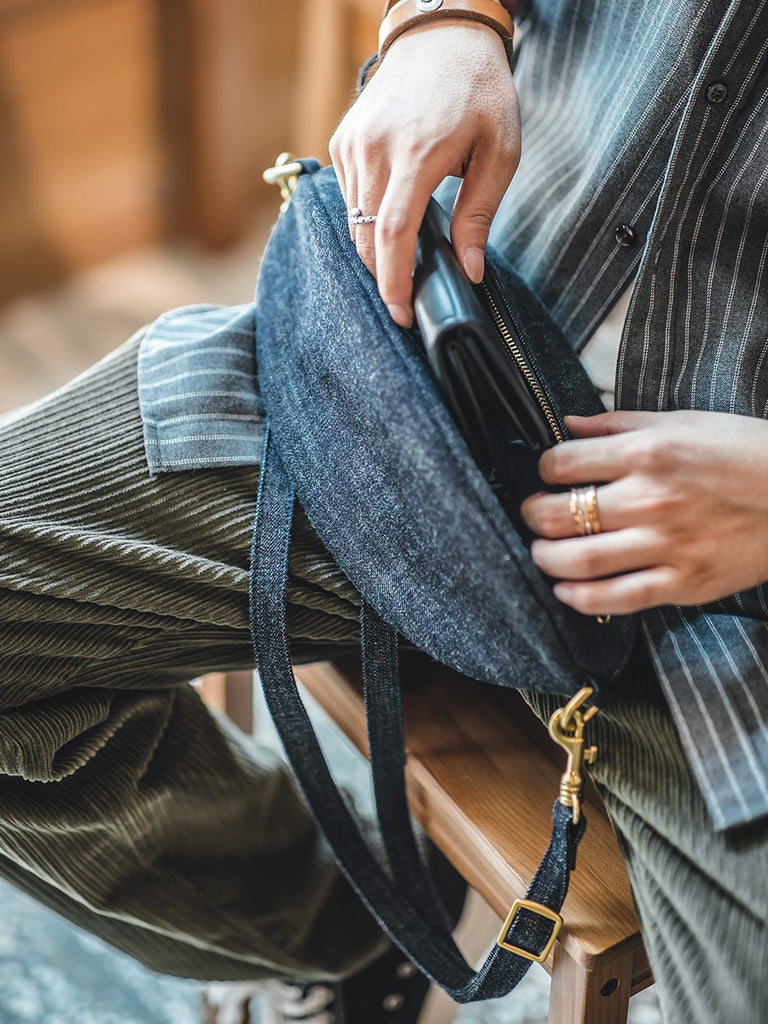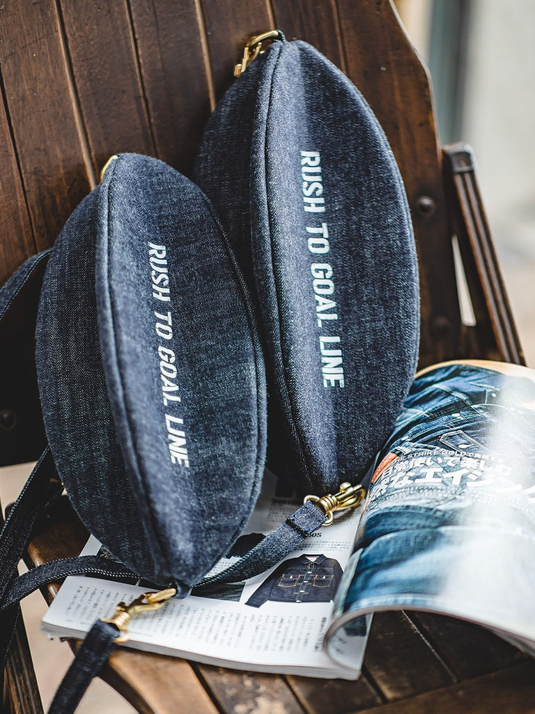 Design: Cool Denim Men's American Football Sling Bag Sling Backpack Unique Sling Crossbody Pack For MenOverview: