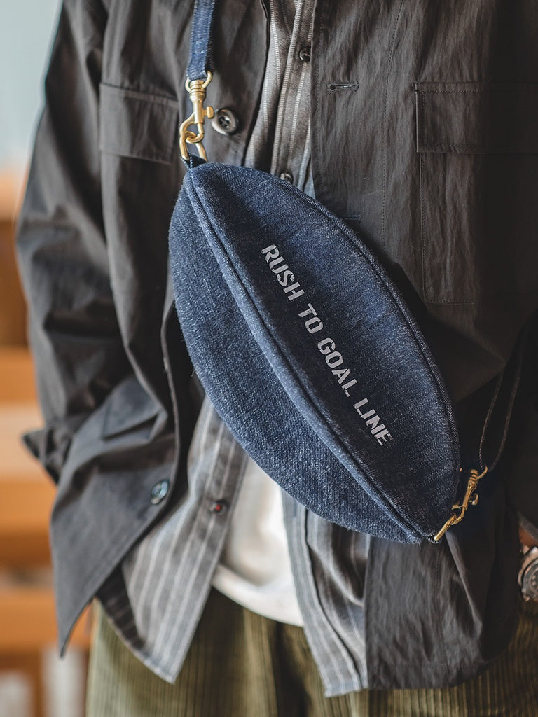 Design: Cool Denim Men's American Football Sling Bag Sling Backpack Unique Sling Crossbody Pack For Men