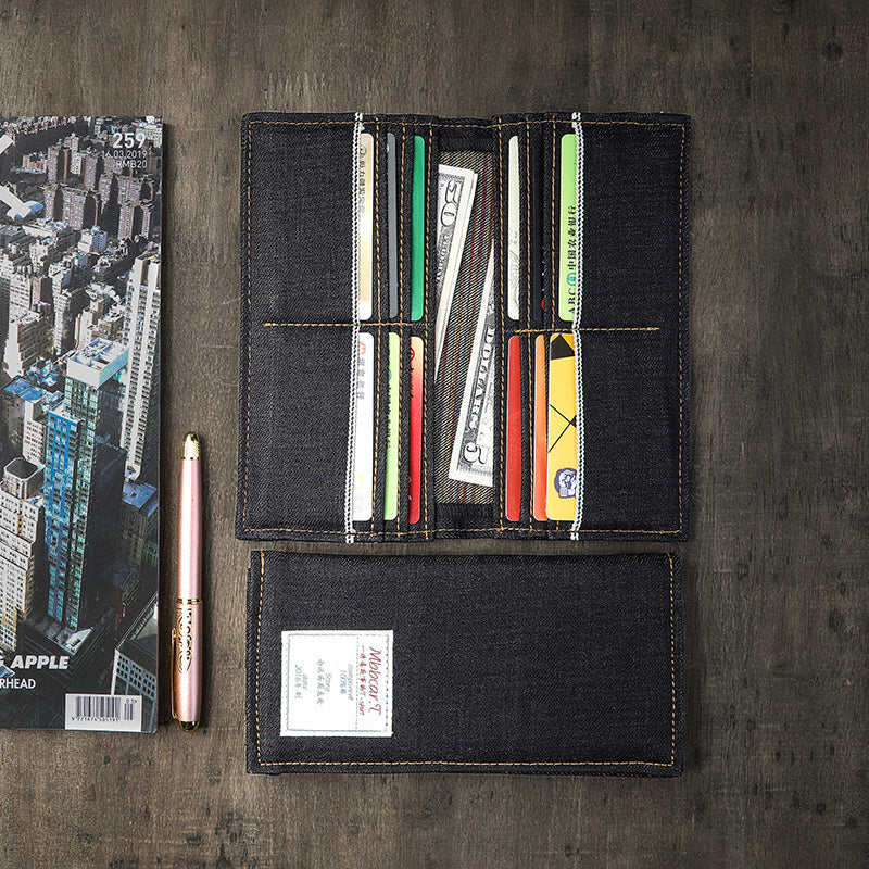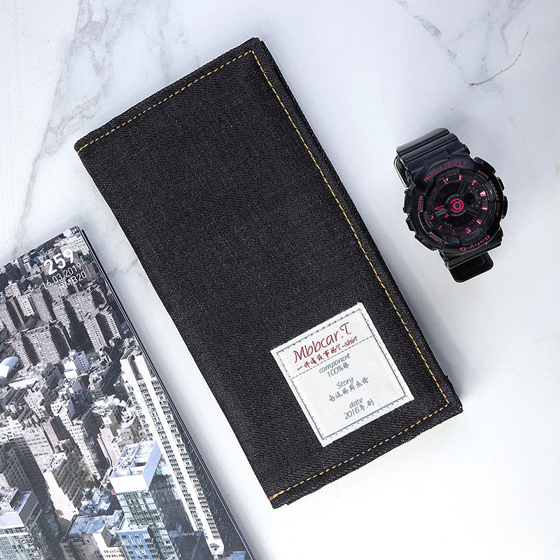 Style: Cool Denim Mens Leather Long Wallets Bifold Card Wallets For Men