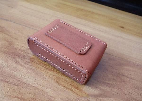 Design: Cool Handmade Brown Leather Mens Cigarette Case with Belt Loop for Men