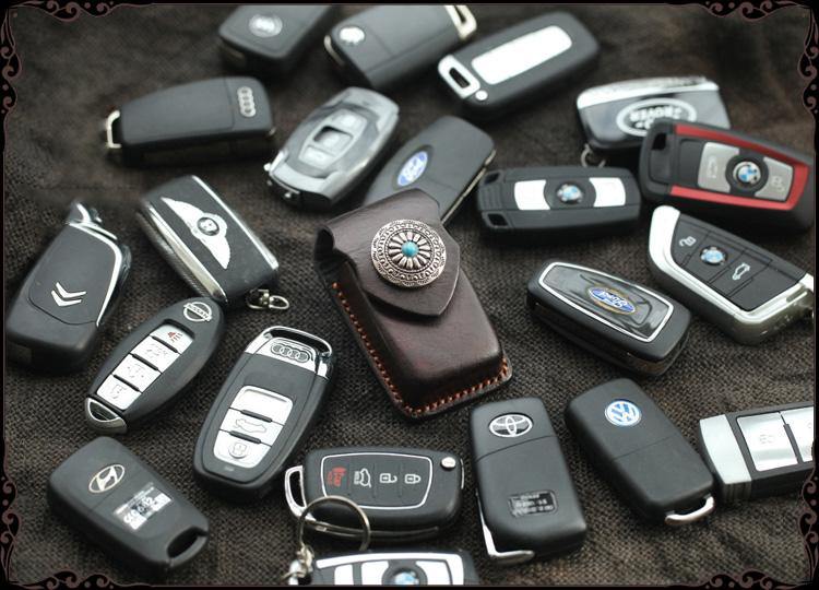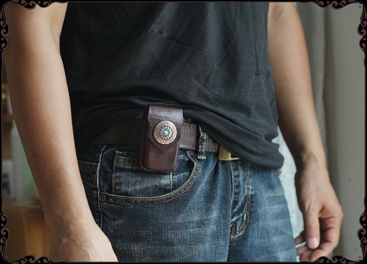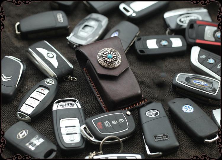 Style: Cool Handmade Chocolate Leather Mens Waist Hanging Car Key Case Car Key Cover For Men