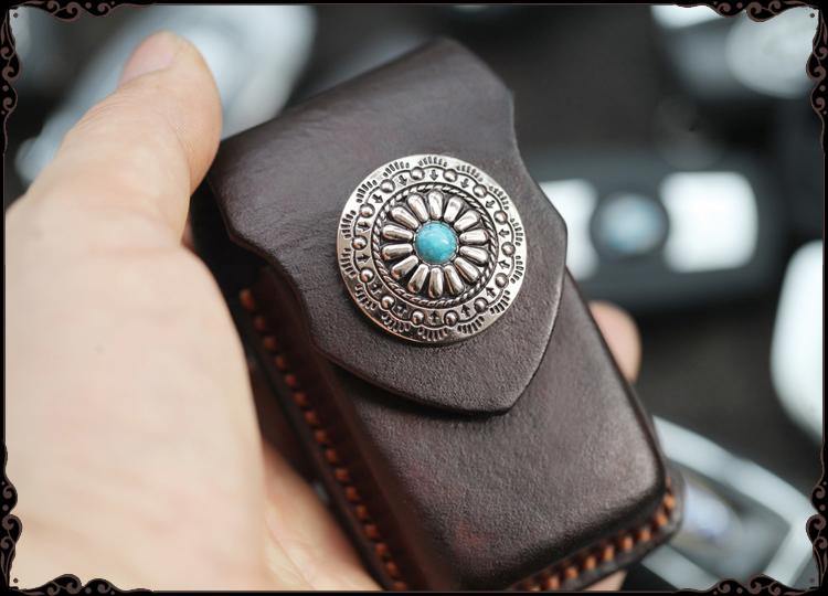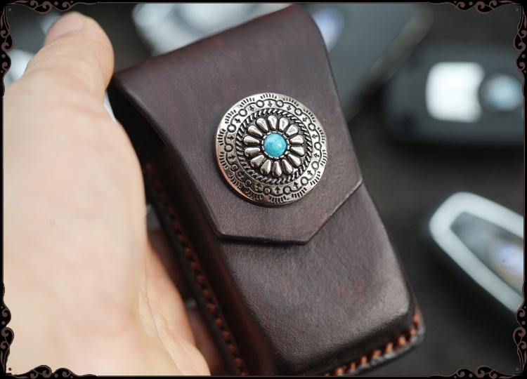 Design: Cool Handmade Chocolate Leather Mens Waist Hanging Car Key Case Car Key Cover For Men