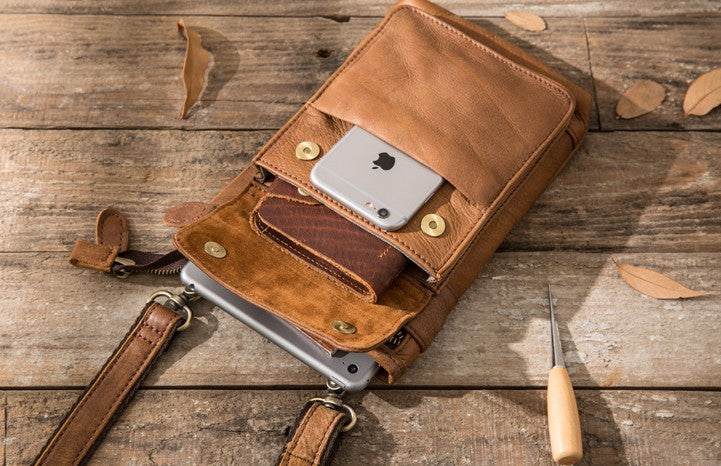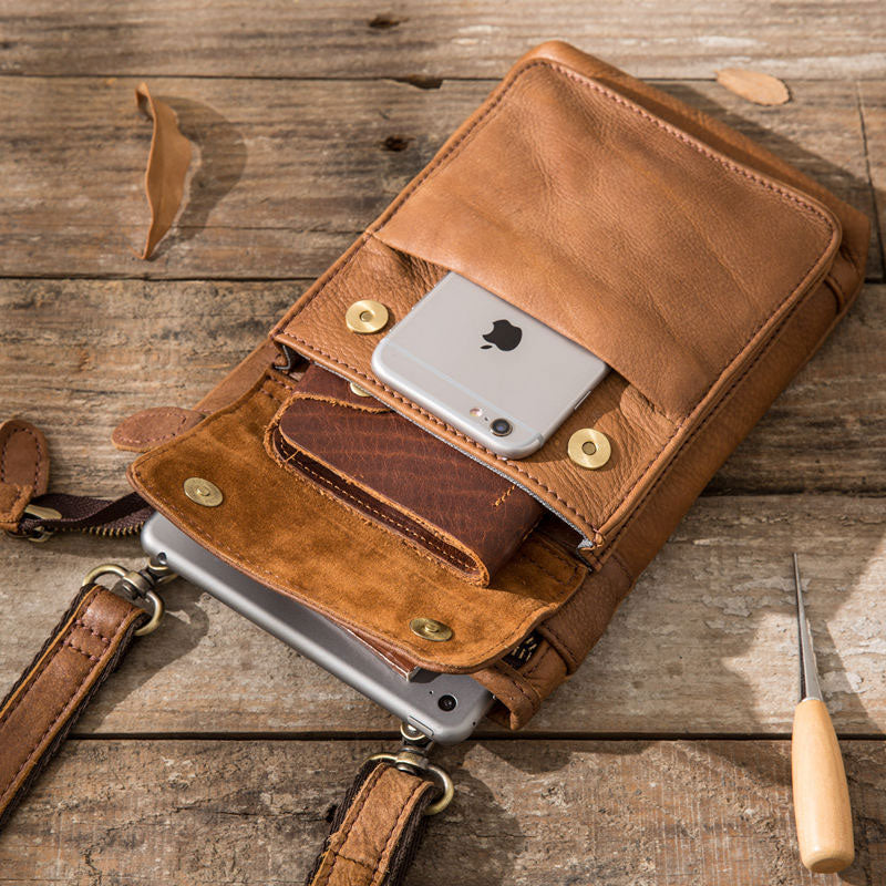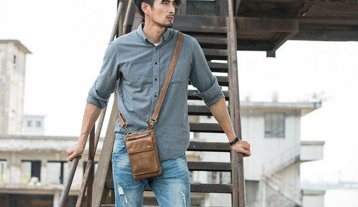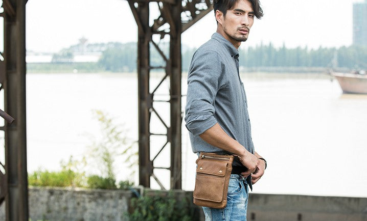 Design: Leather Belt Pouch Phone Case Mens Waist Bag Shoulder Bag for Men