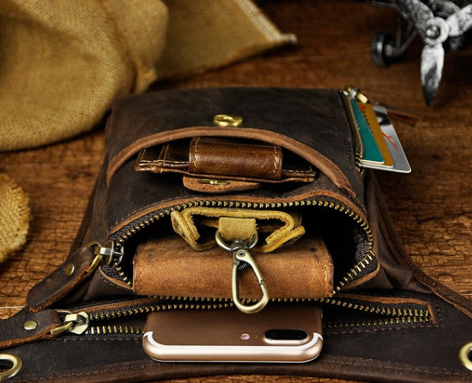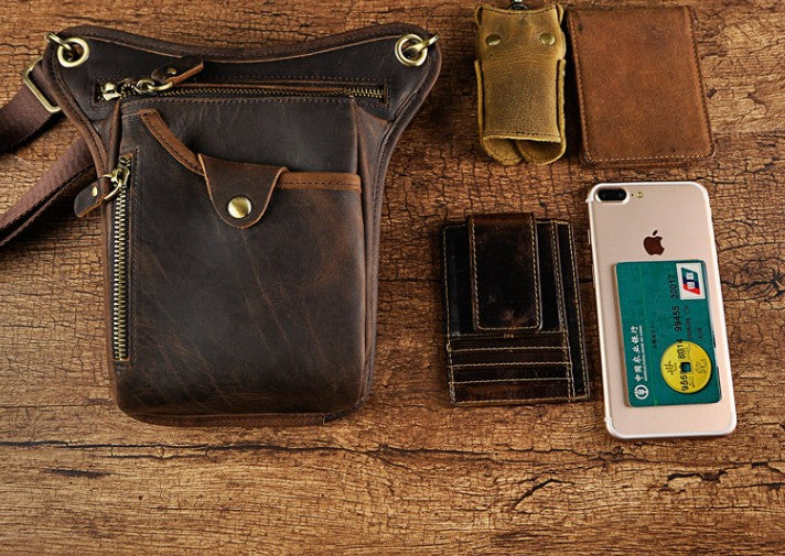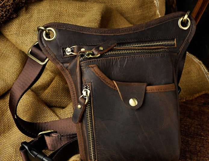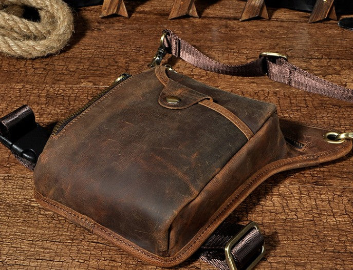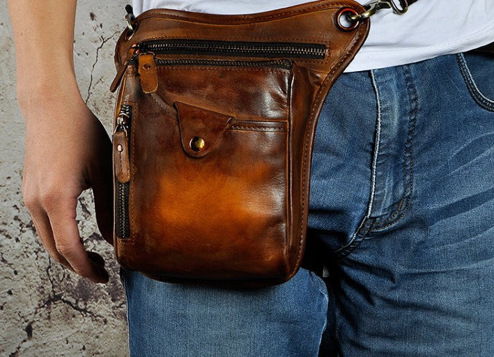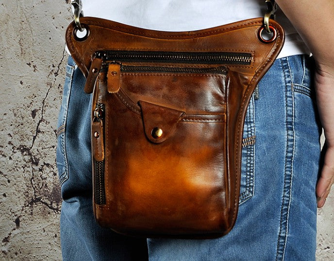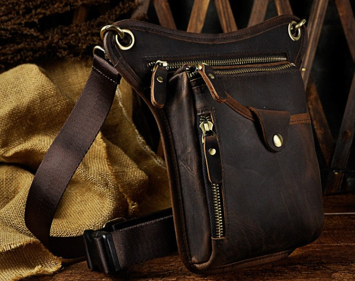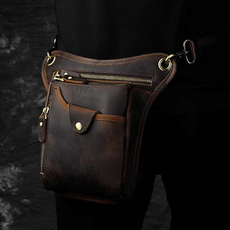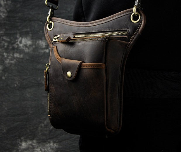 Design: Cool Leather Drop Leg Bag Belt Pouch Mens Waist Bag Shoulder Bag for Men