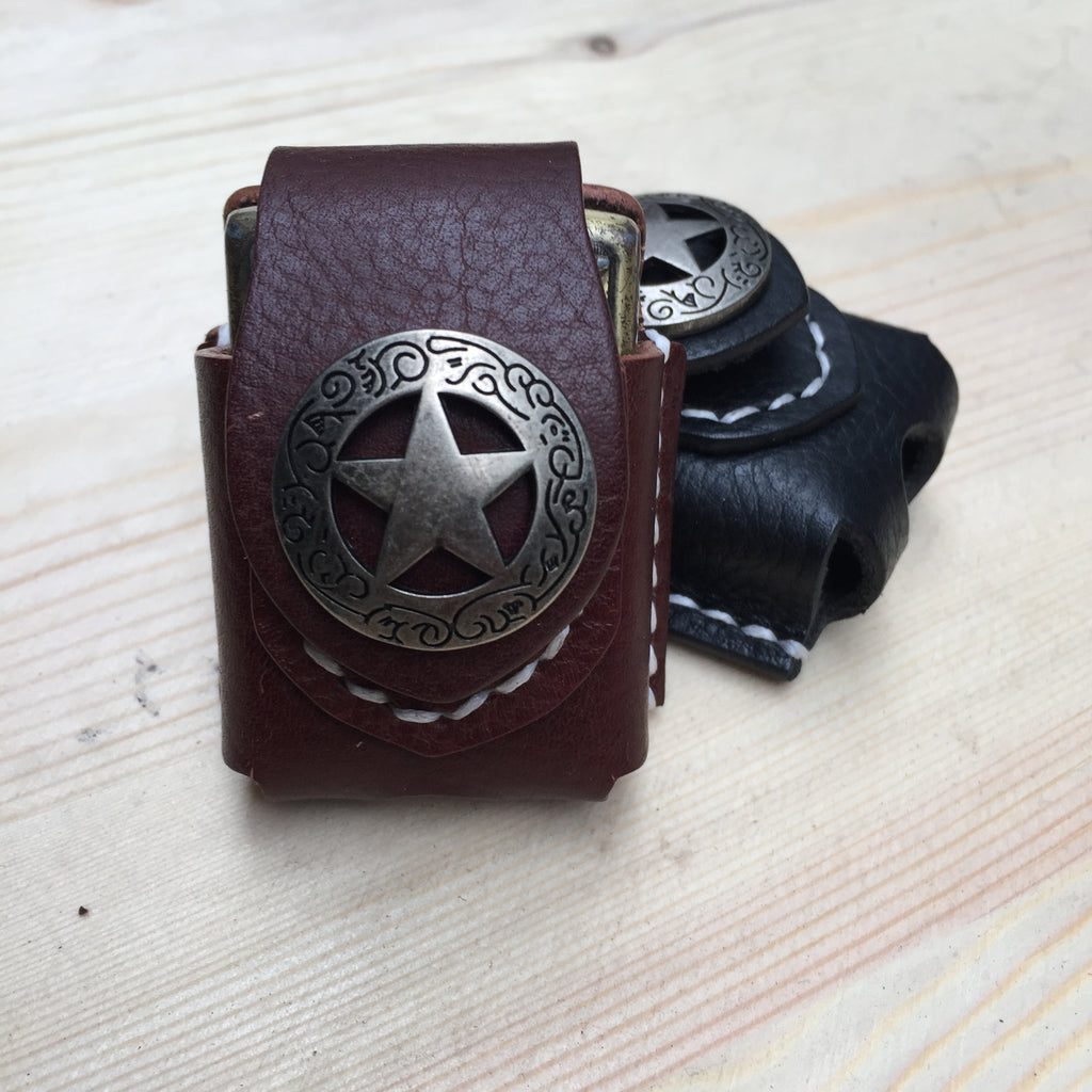 Design: Cool Zippo Case Leather Zippo Lighter Pouch with Loop Texas Star Zippo lighter Case with Clip