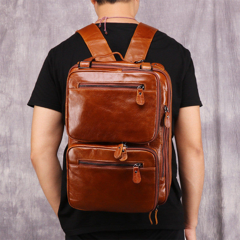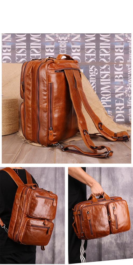 Design: Cool Leather Black Mens Large Brown Travel Backpack 14inch Dark Brown Briefcase Backpack Laptop Backpack for Men