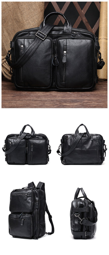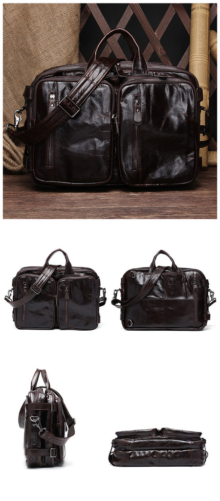 Design: Cool Leather Black Mens Large Brown Travel Backpack 14inch Dark Brown Briefcase Backpack Laptop Backpack for MenOverview: