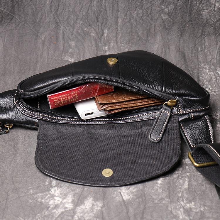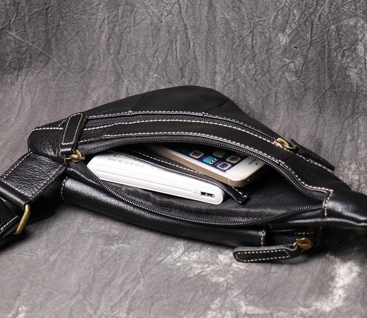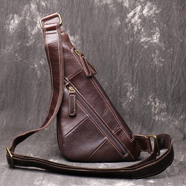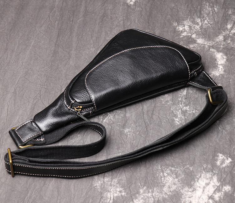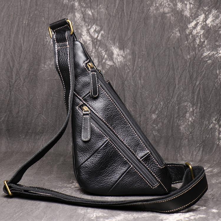 Design: Cool Leather Black Sling Bag Men's 8 inches Sling Pack Brown Sling Backpack Small Courier Bag For MenOverview: