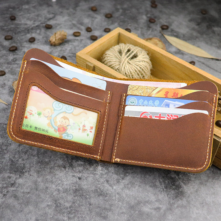 Style: Cool Leather Brown Men's Dark Brown billfold Small Wallet Bifold Wallet Multi-Card Wallet For Men