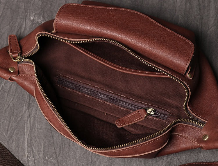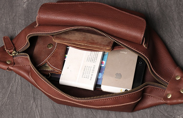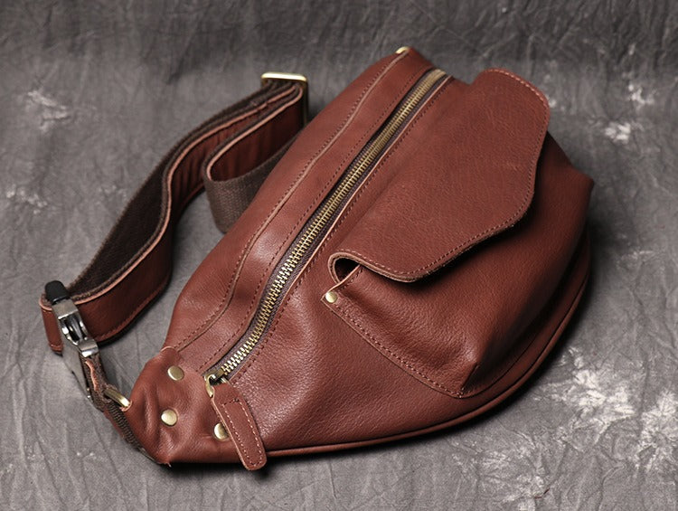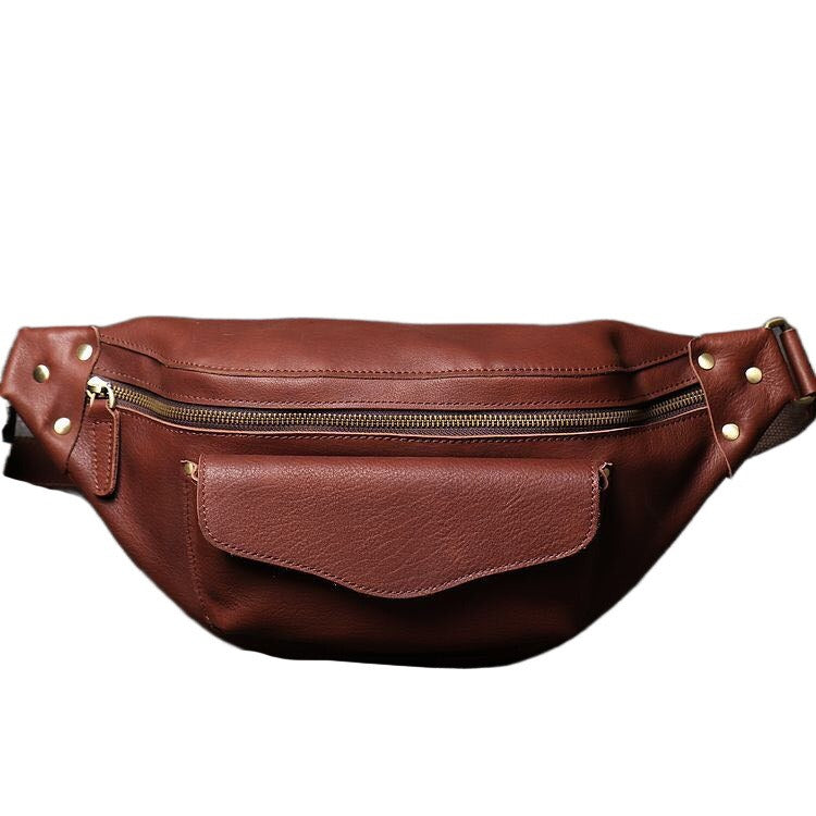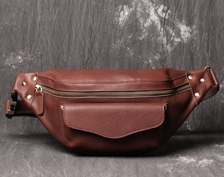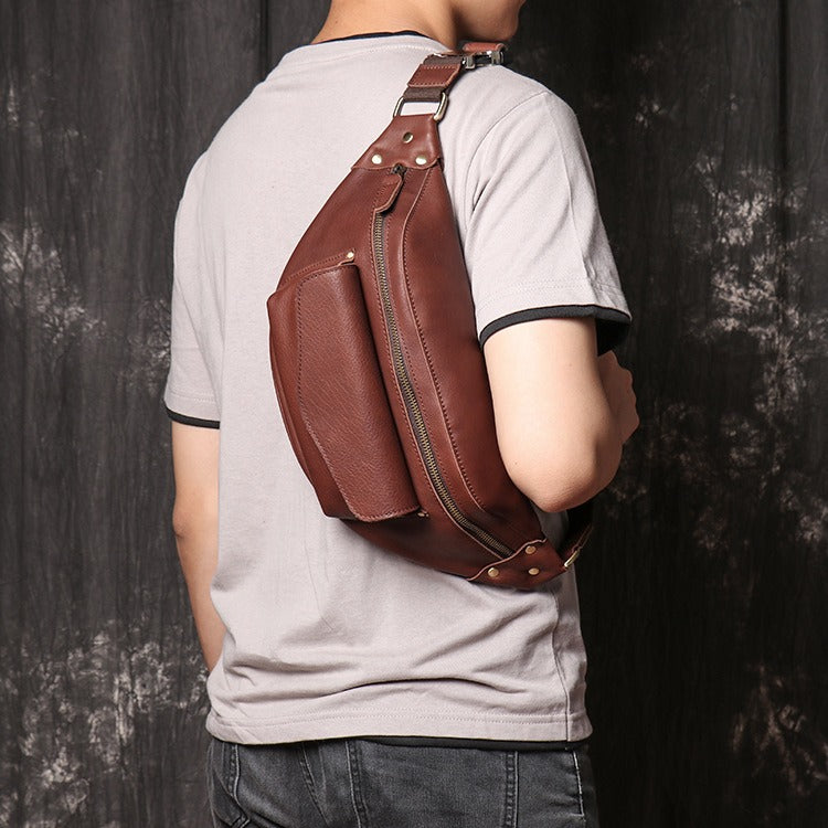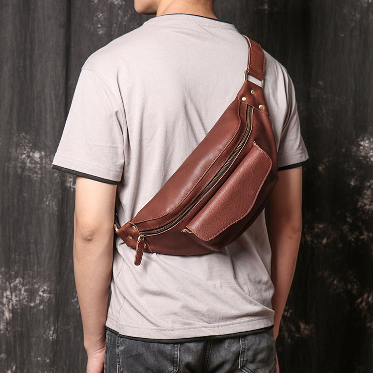 Cool Leather Fanny Pack Belt Bag Mens Hip Pack Coffee Waist Bag Sling Bags For Men