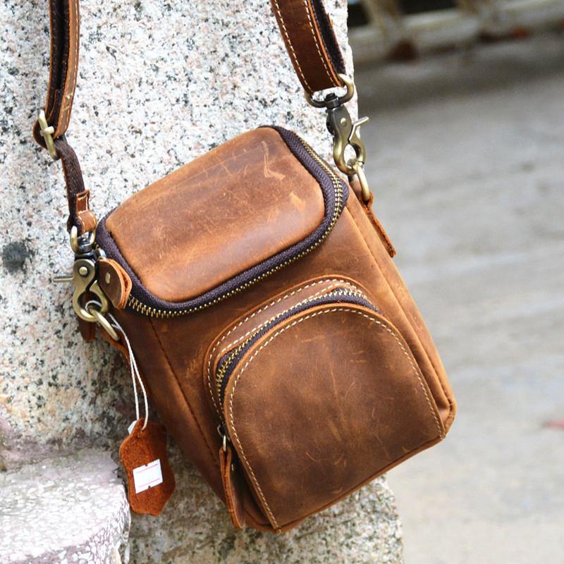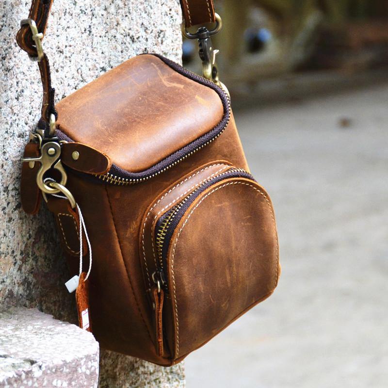 Design: Cool Leather Fanny Pack Men's Brown Shoulder Bag Waist Bag Messenger Bag For Men