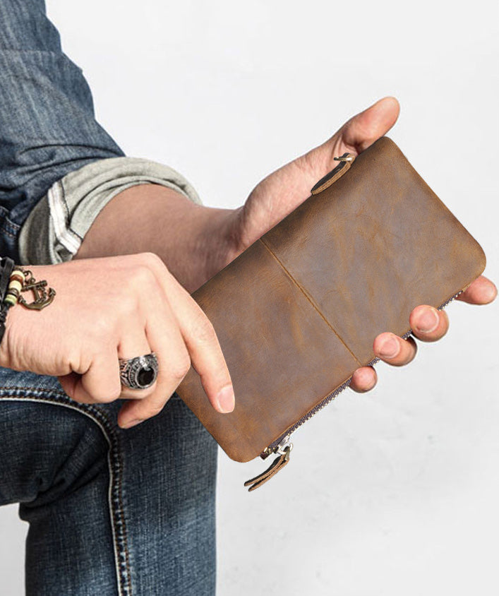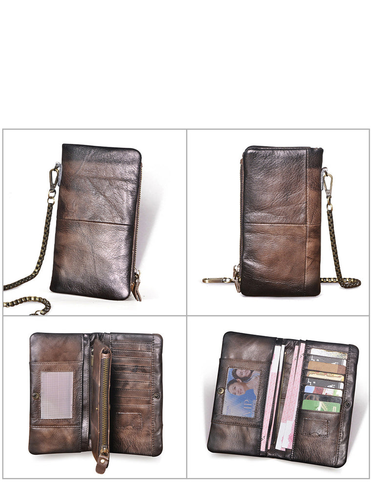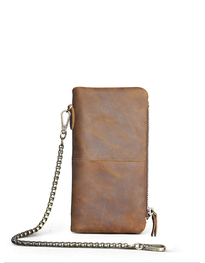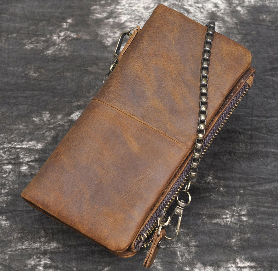 Design: Cool Leather Men's Biker Chain Wallet Trifold Biker Long Wallet with Chain For Men