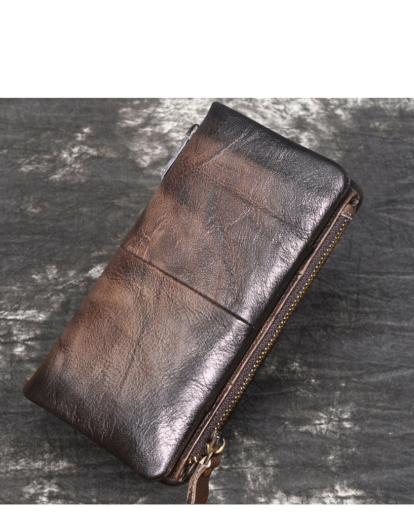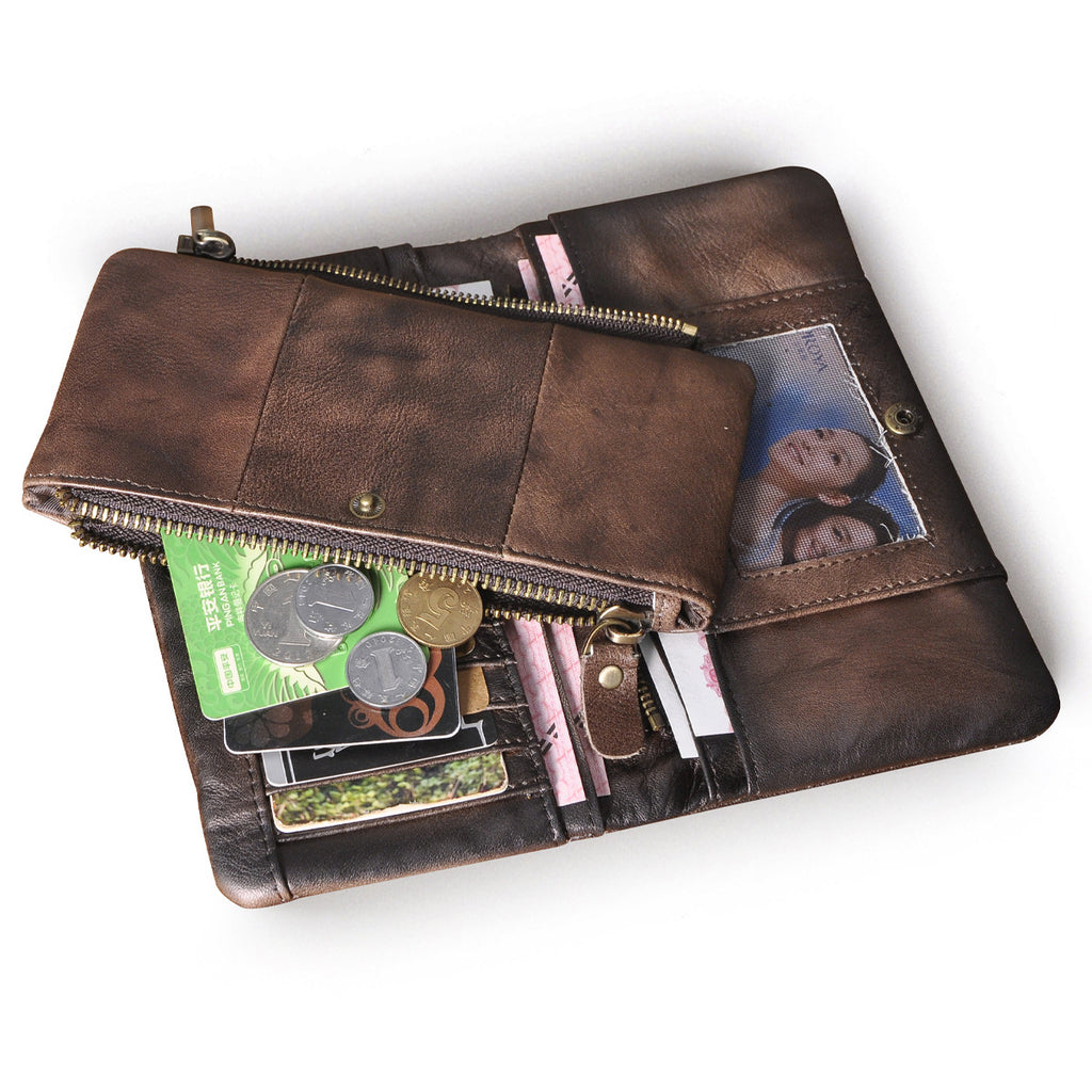 Cool Leather Men's Biker Chain Wallet Trifold Biker Long Wallet with Chain For Men