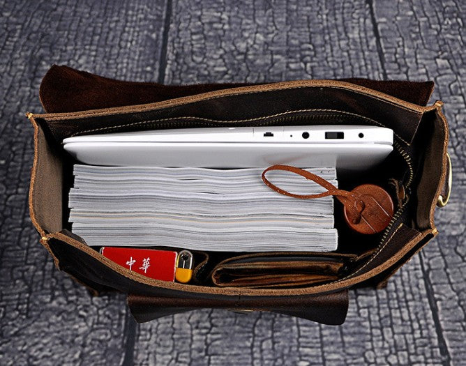 Design: Cool Leather Mens Briefcase Messenger Bag Shoulder Bag Satchel Backpack for men