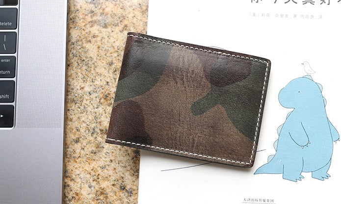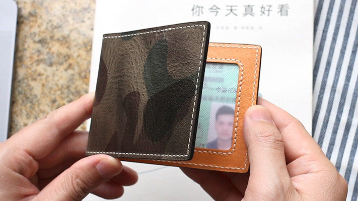 Style: Cool Leather Mens Camouflage License Wallet Front Pocket Wallet Slim Card Wallet for Men