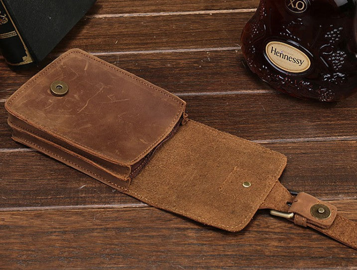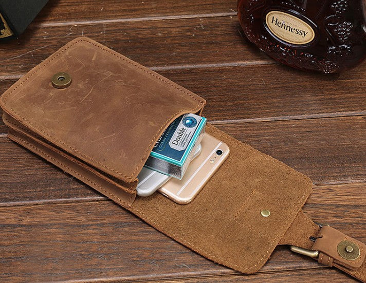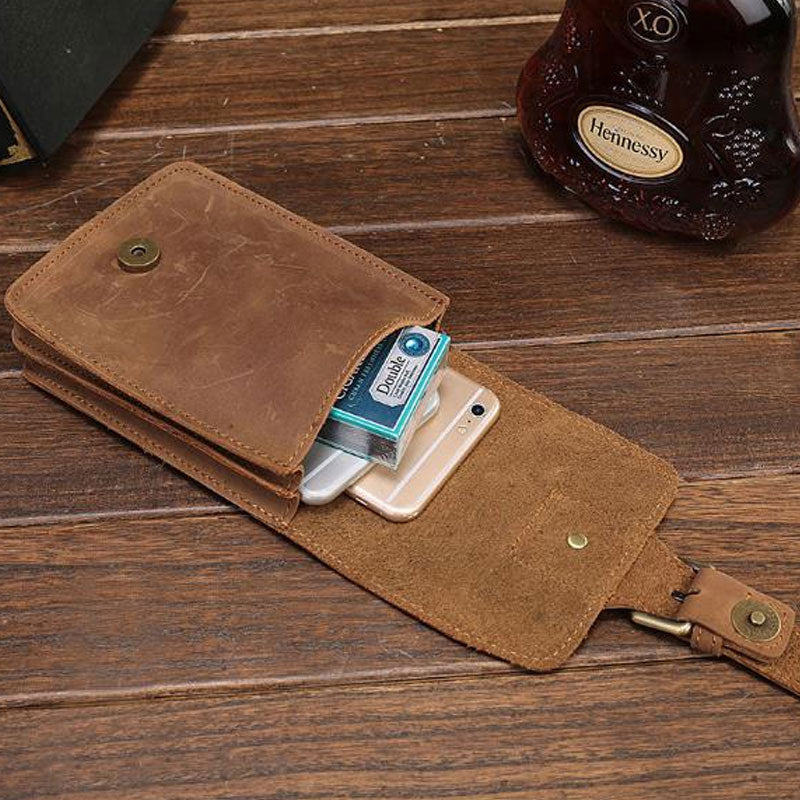 Design: Leather Mens Cigarette Case with Belt Loop Cell Phone Holster Belt Pouch for Men