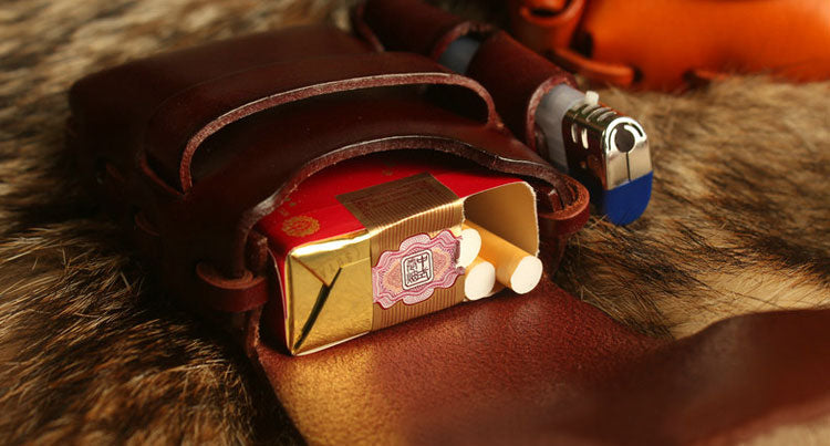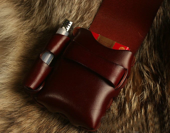 Design: Cool Leather Mens Cigarette Case Cigarette Holder with Belt Loop Lighter Holder for Men