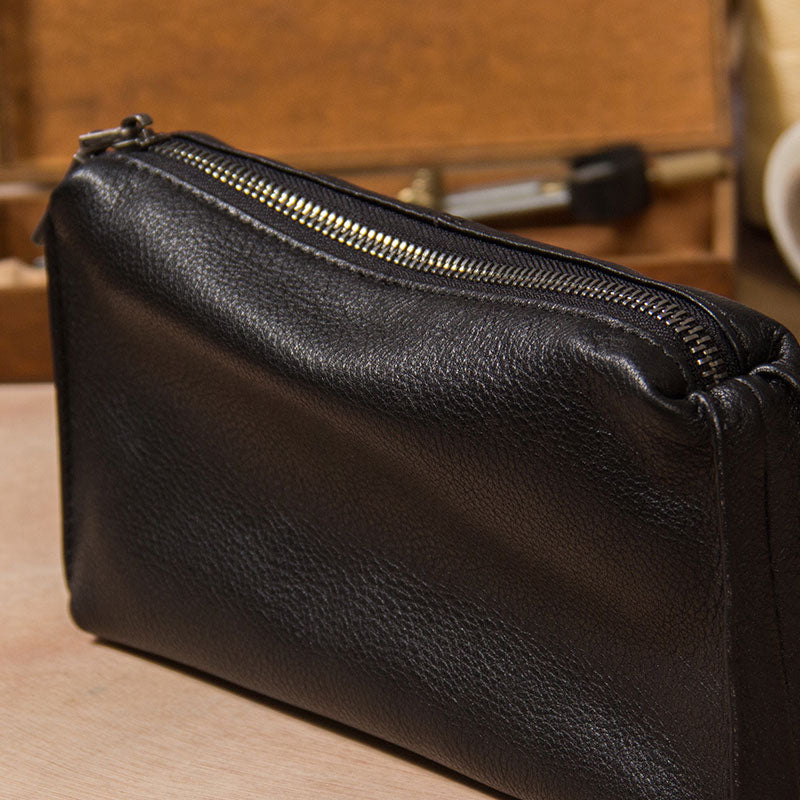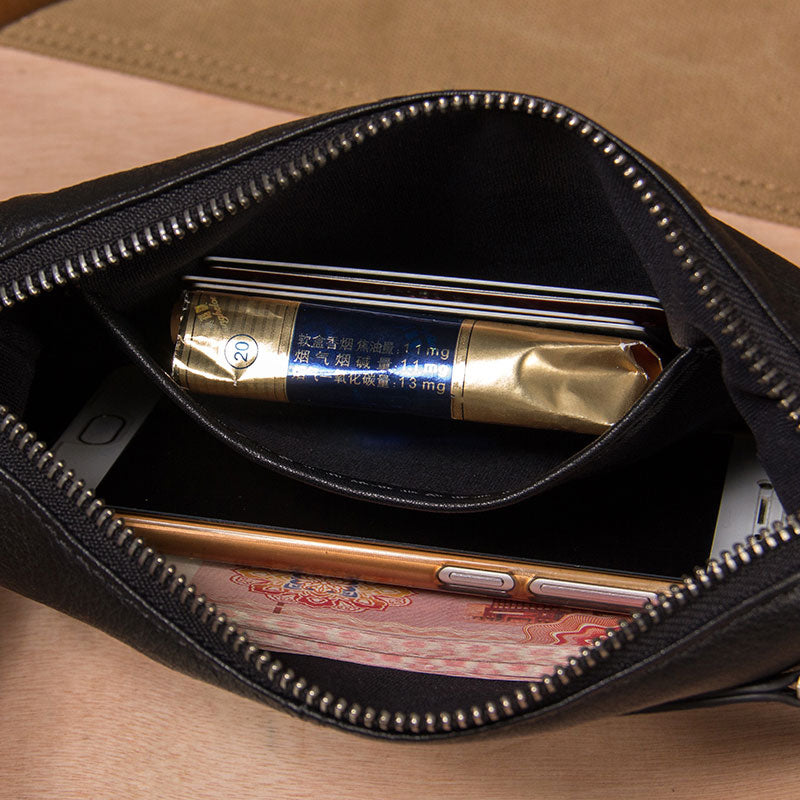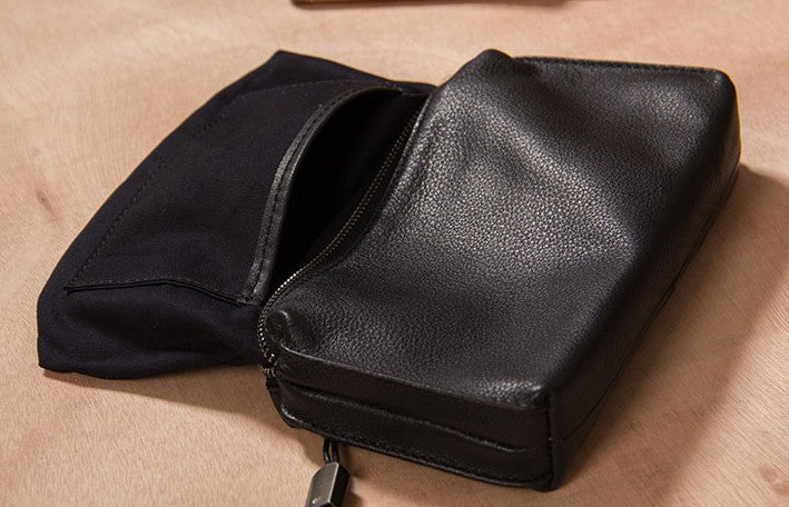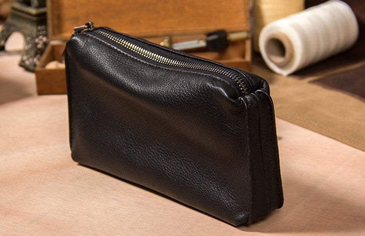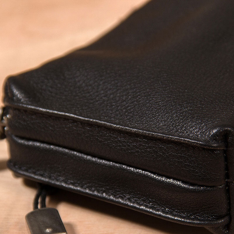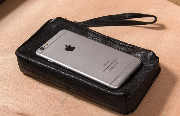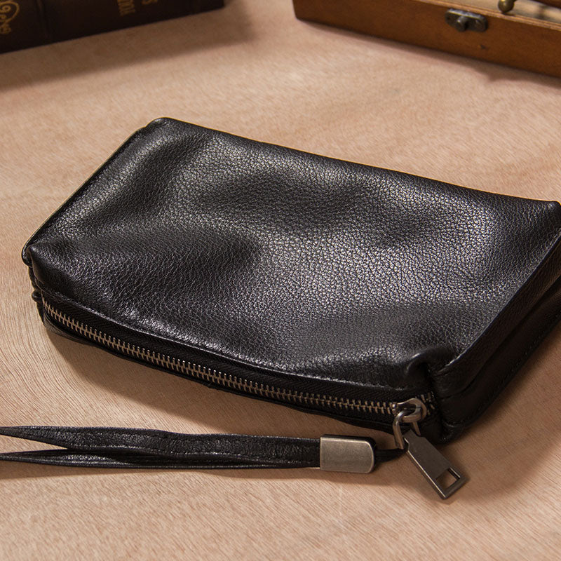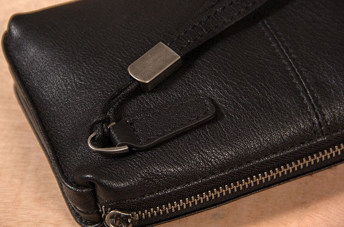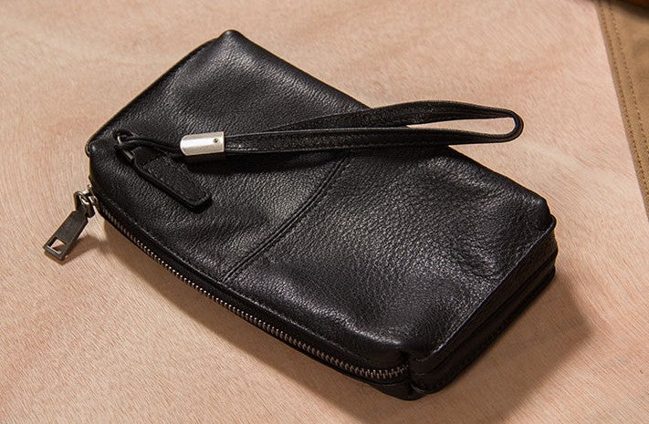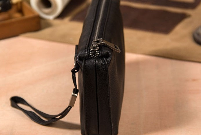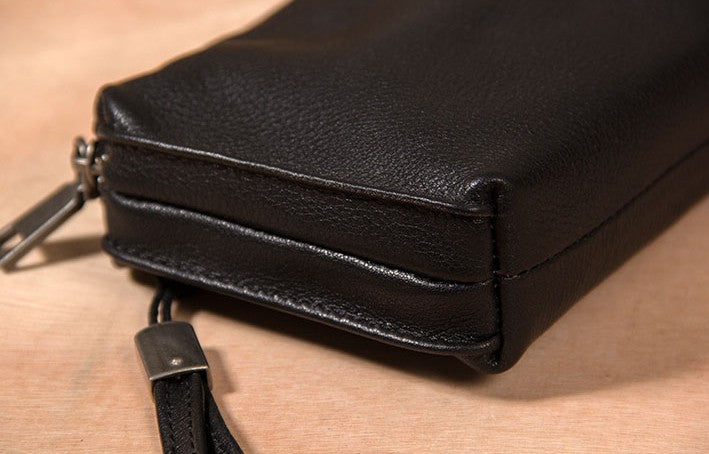 Design: Cool Leather Mens Clutch Wristlet Bag Black Zipper Clutch for Men