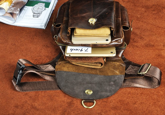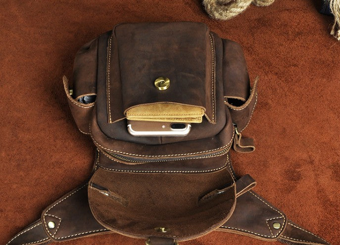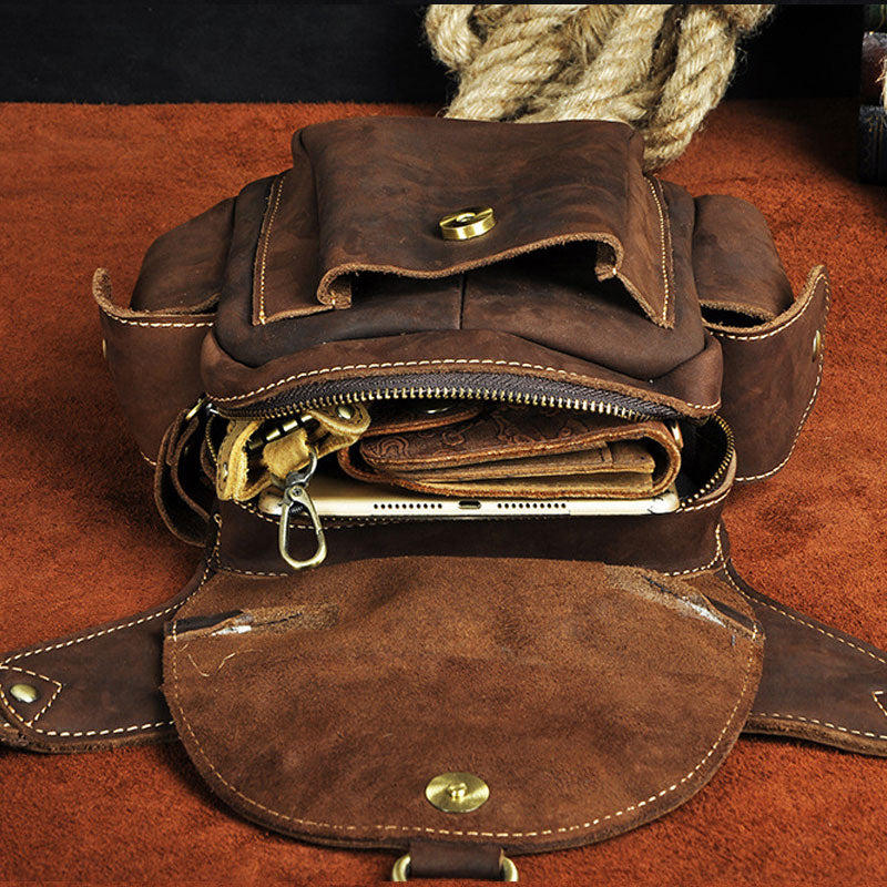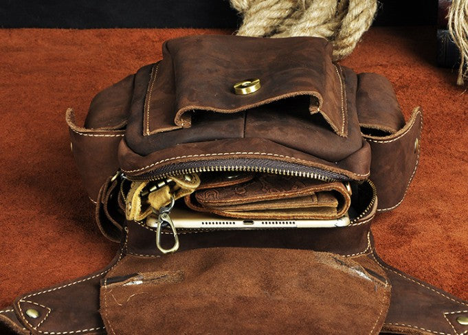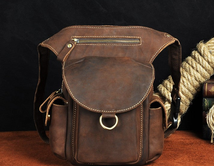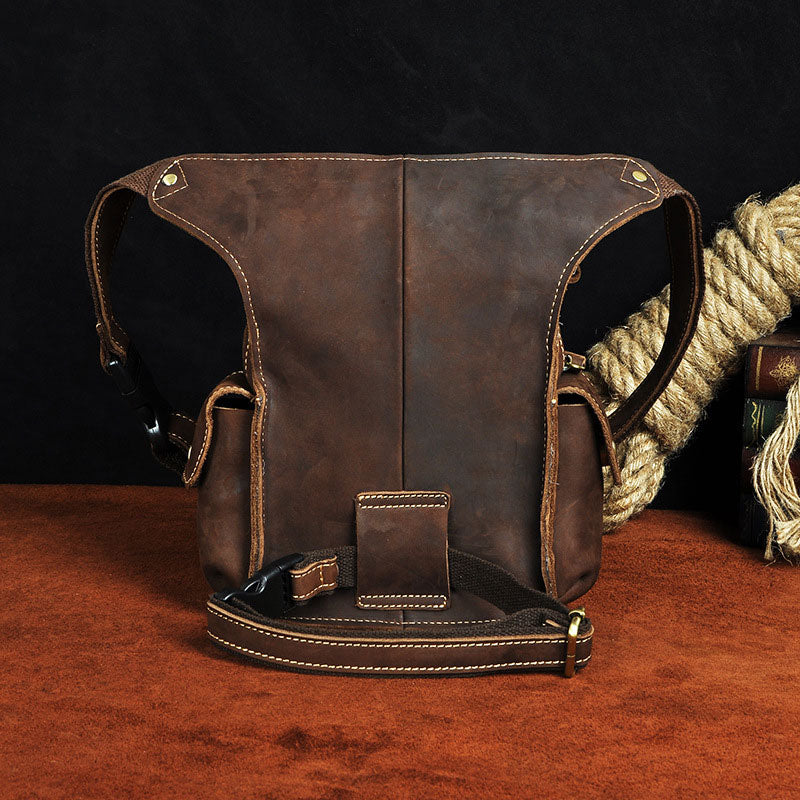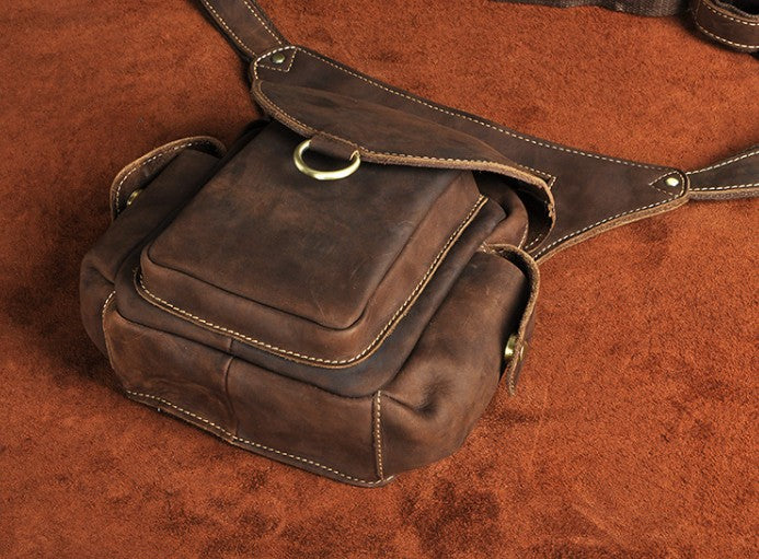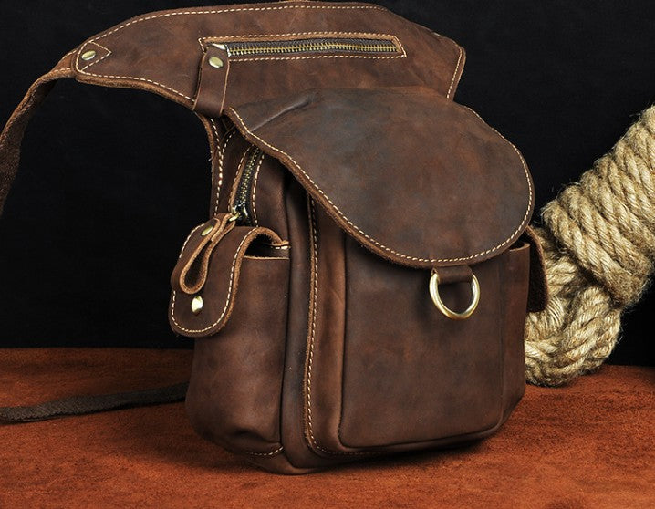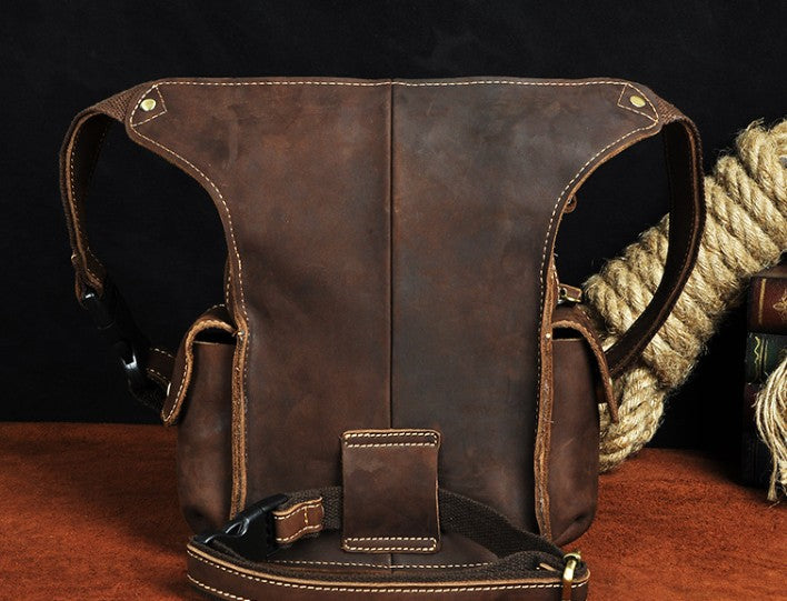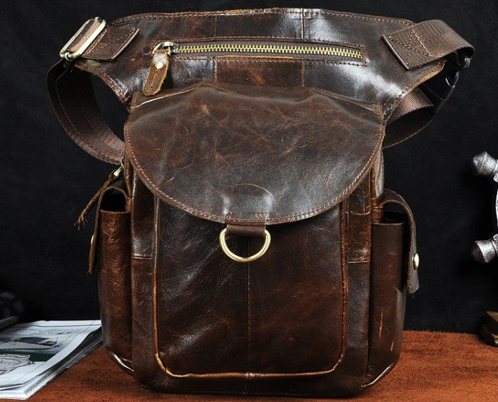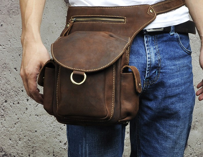 Style: Cool Leather Mens Drop Leg Bag Belt Pouch Waist Bag Shoulder Bag for Men