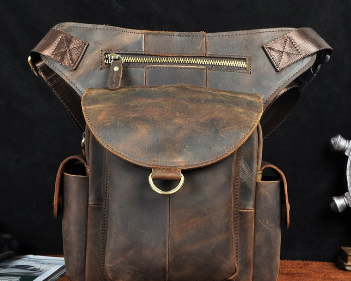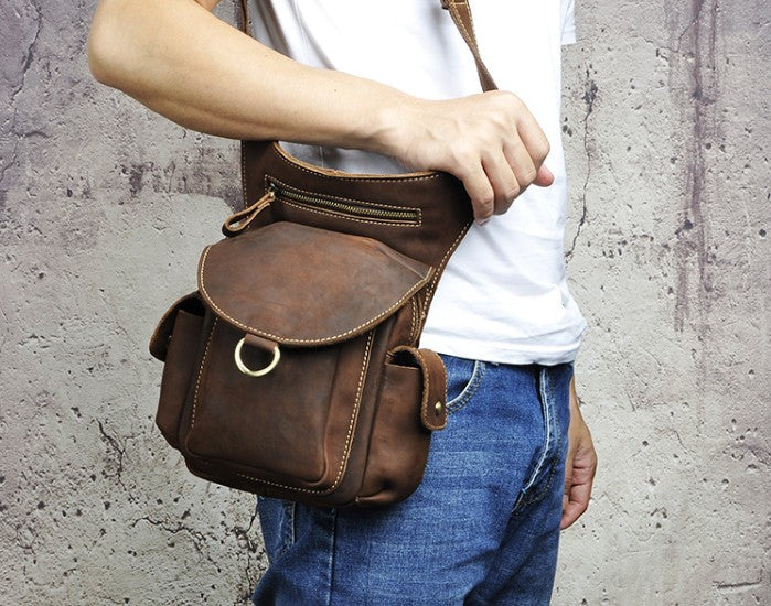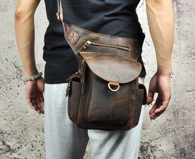 Design: Cool Leather Mens Drop Leg Bag Belt Pouch Waist Bag Shoulder Bag for Men