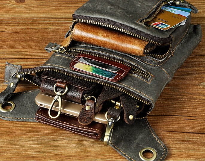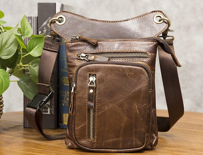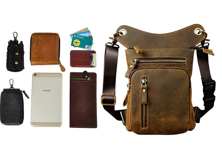 Design: Cool Leather Drop Leg Bag Belt Pouch Mens Waist Bag Shoulder Bag for Men