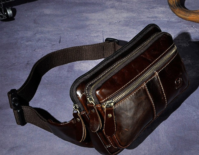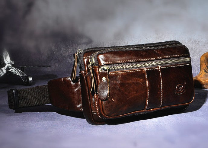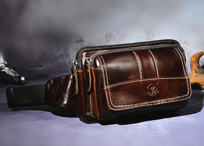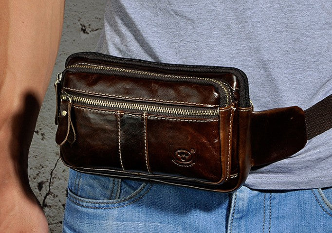 Design: Leather Mens Fanny Pack Waist Bag Hip Pack Belt Bag Bumbag for Men