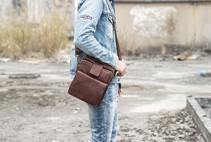 Design: Cool Leather Mens Small Shoulder Bags Messengers Bag for Men