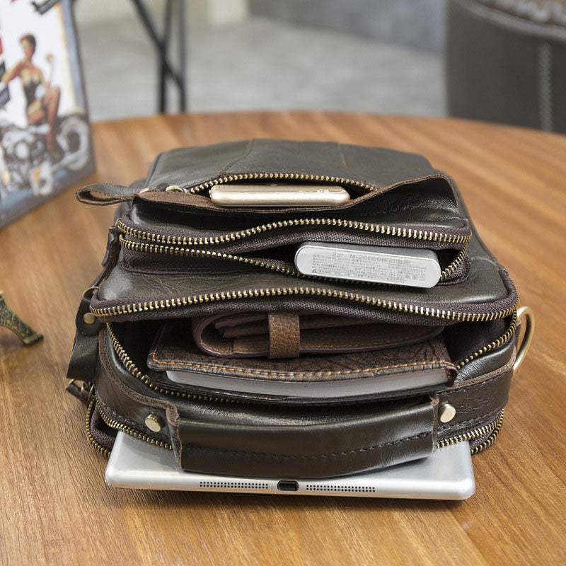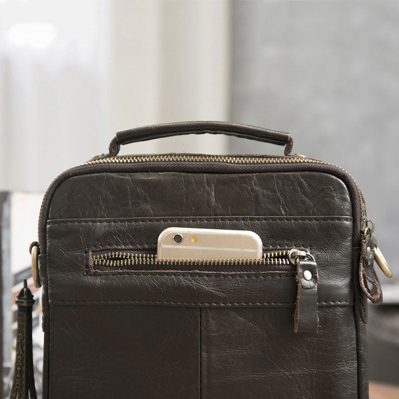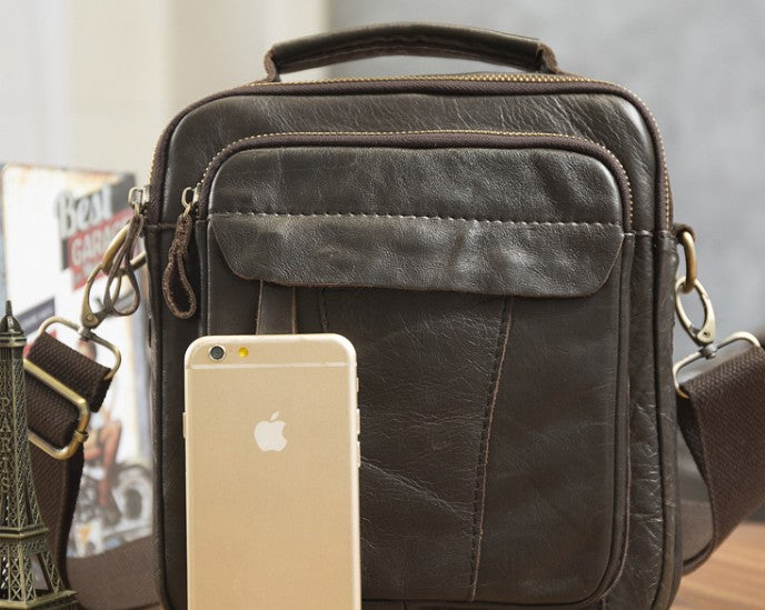 Design: Cool Coffee Small Leather Mens Side Bag Messenger Bag Shoulder Bag for Men