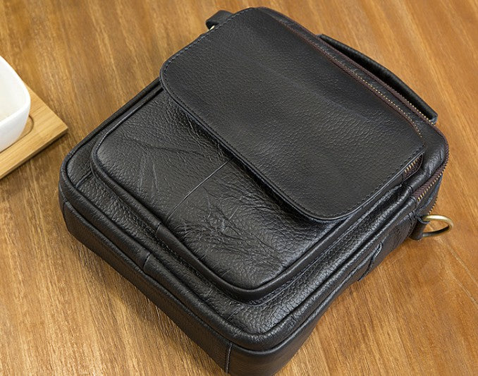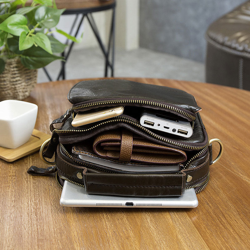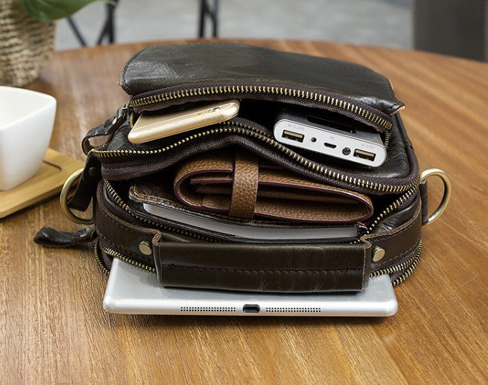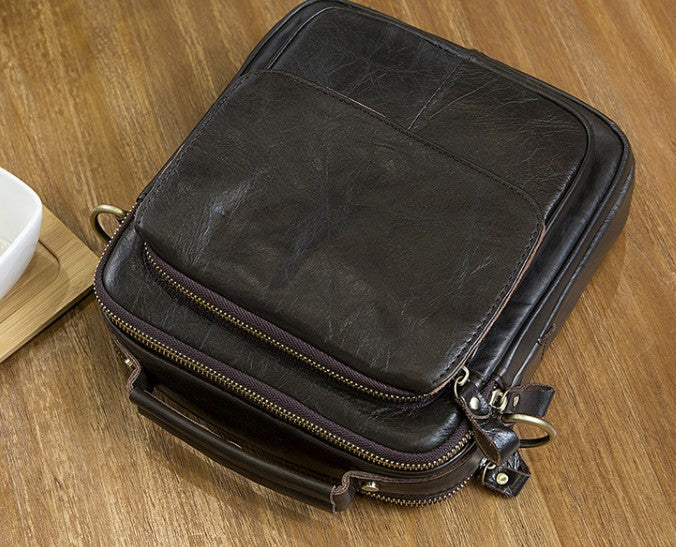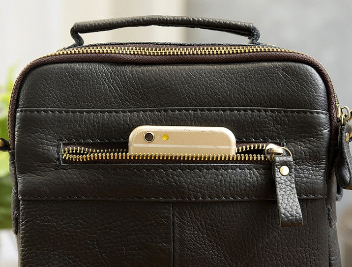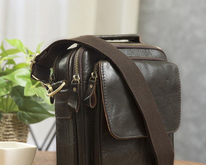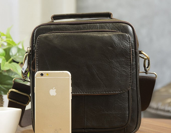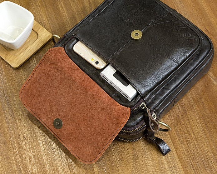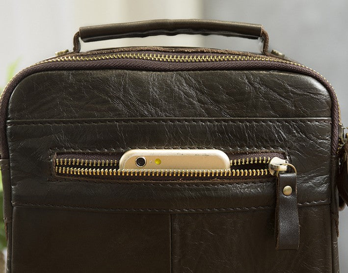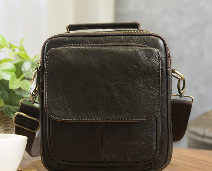 Design: Cool Coffee Small Leather Mens Side Bag Messenger Bag Shoulder Bag for Men