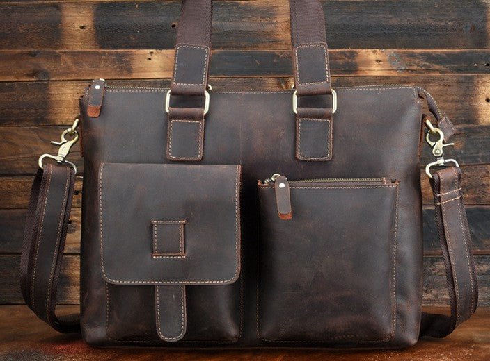 Design: Cool Leather Briefcase 13inch Handbag Work Bag Business Bag Shoulder Bag For Men