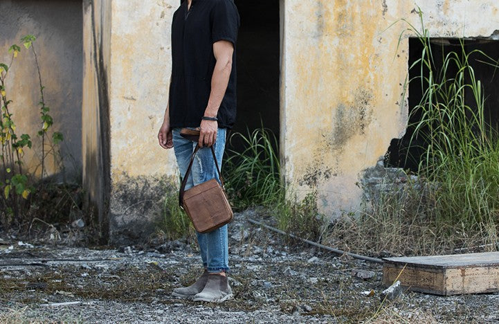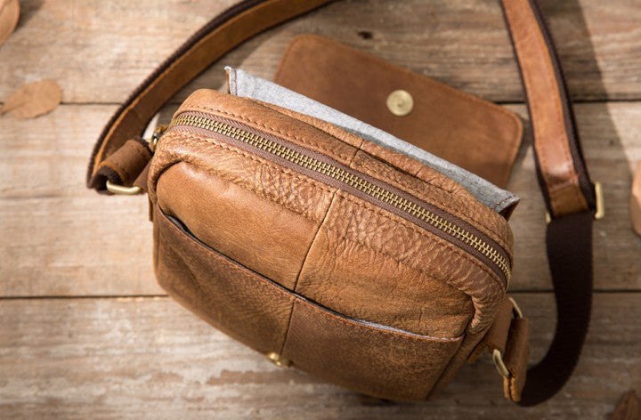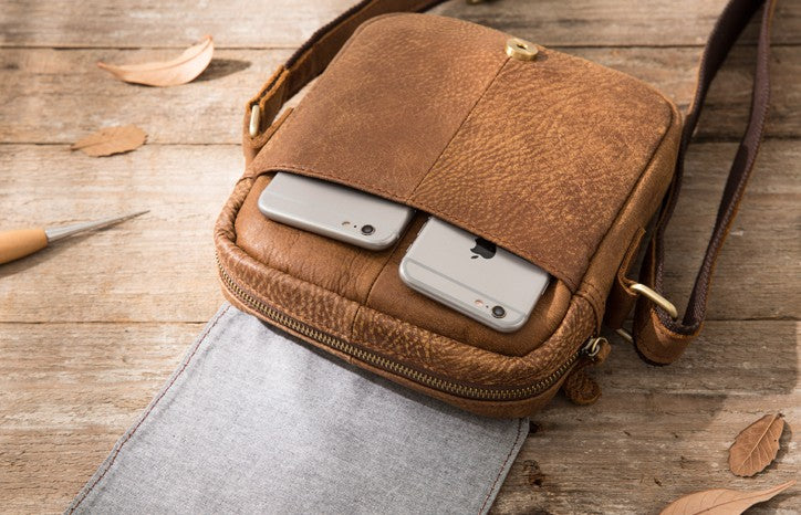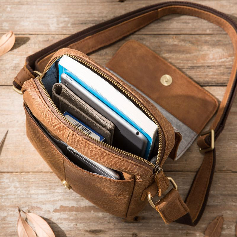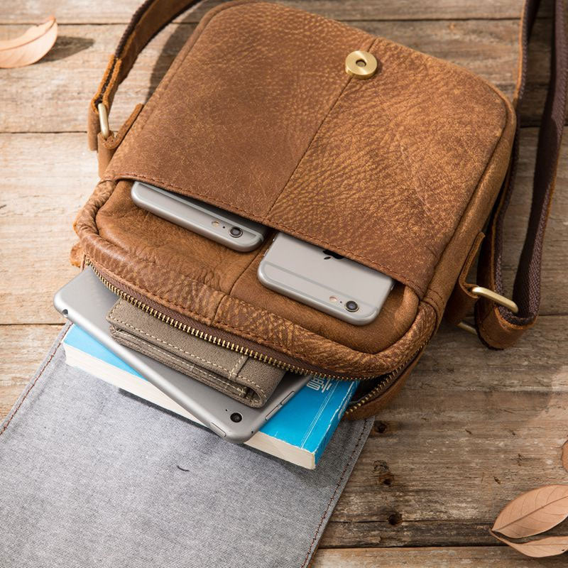 Style: Cool Leather Mens Small Messenger Bags Shoulder Bag for Men