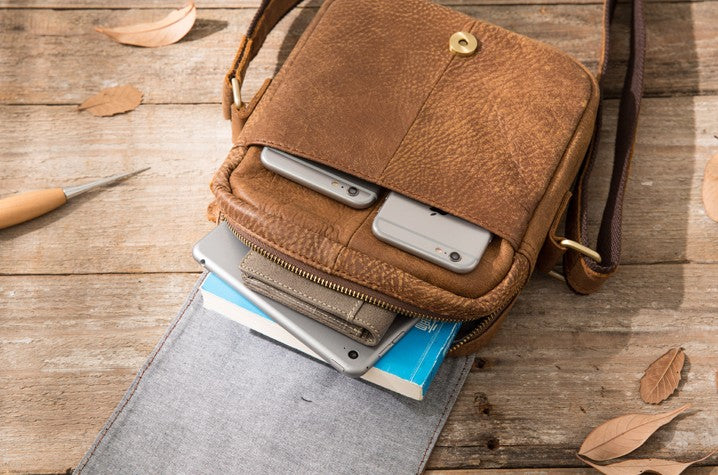 Design: Cool Leather Mens Small Messenger Bags Shoulder Bag for Men