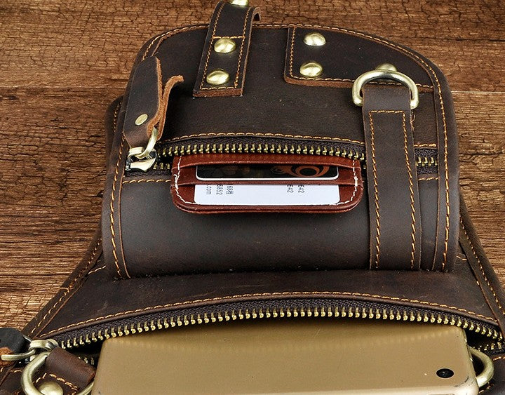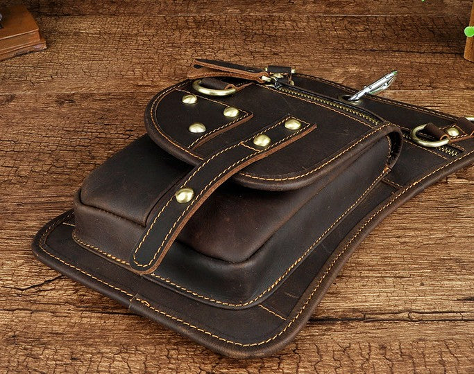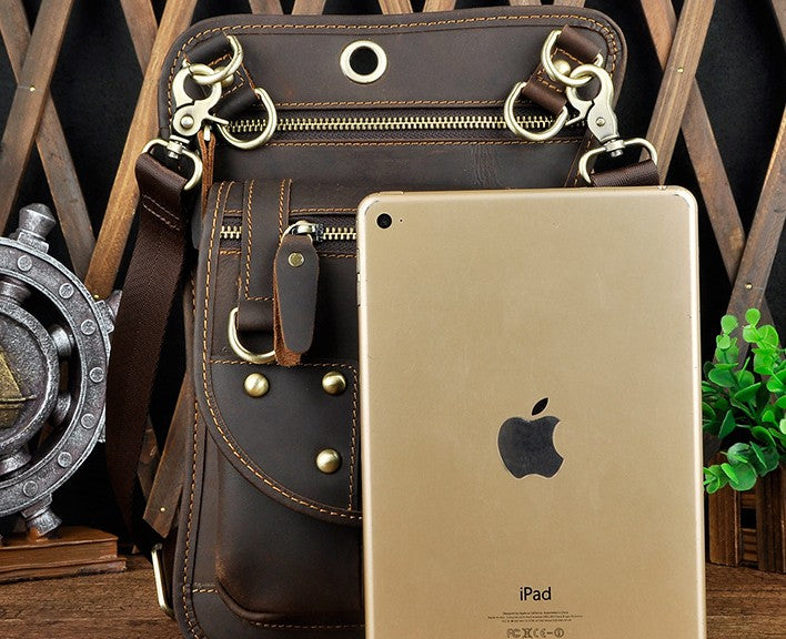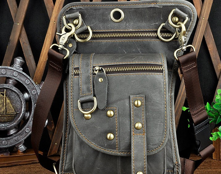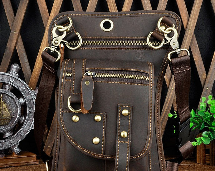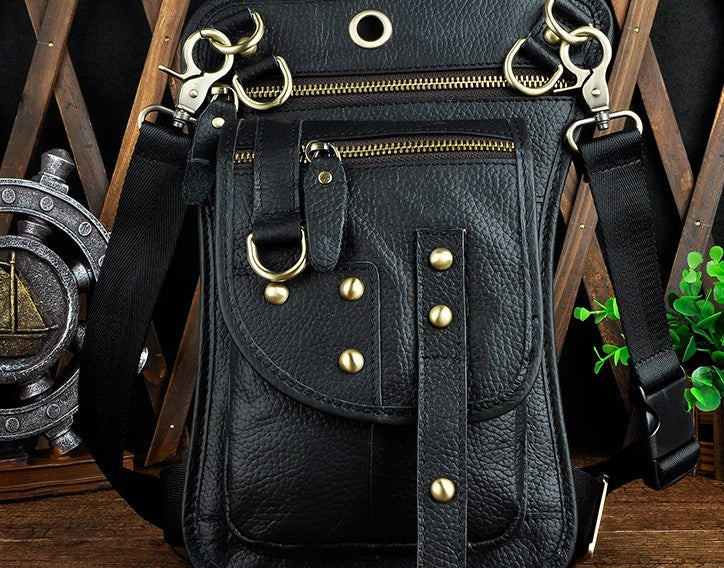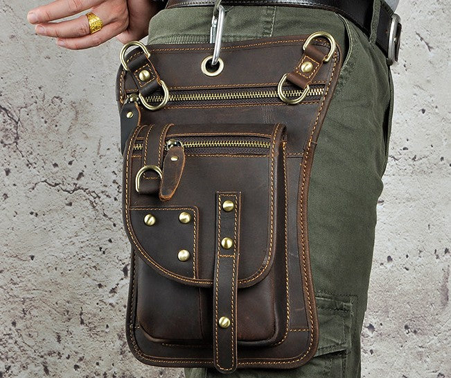 Design: Cool Leather Utility Drop Leg Bag Belt Pouch Mens Waist Bag Shoulder Bag for Men