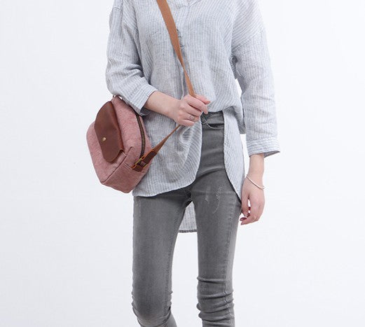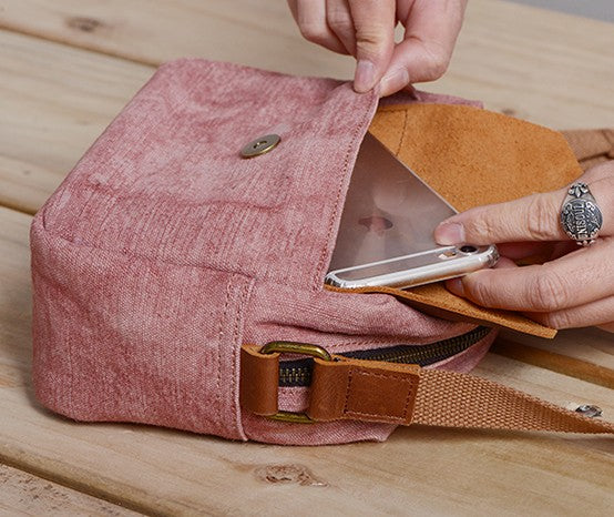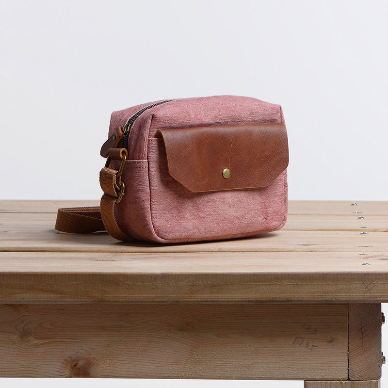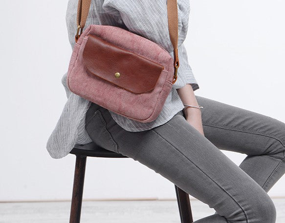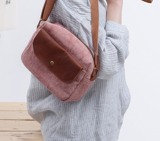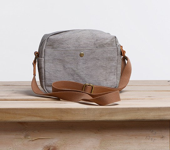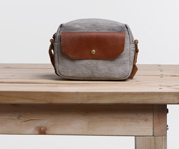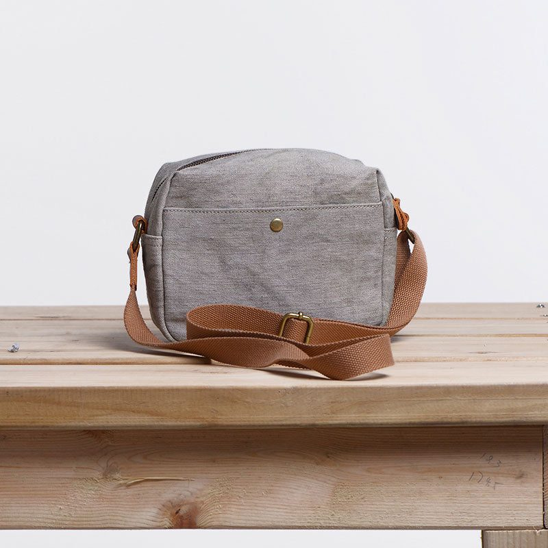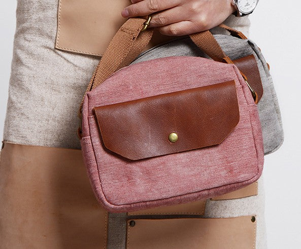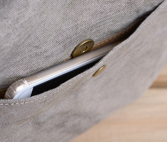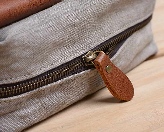 Design: Cool Mens Canvas Leather Side Bag Gray Courier Bag Messenger Bag for Men