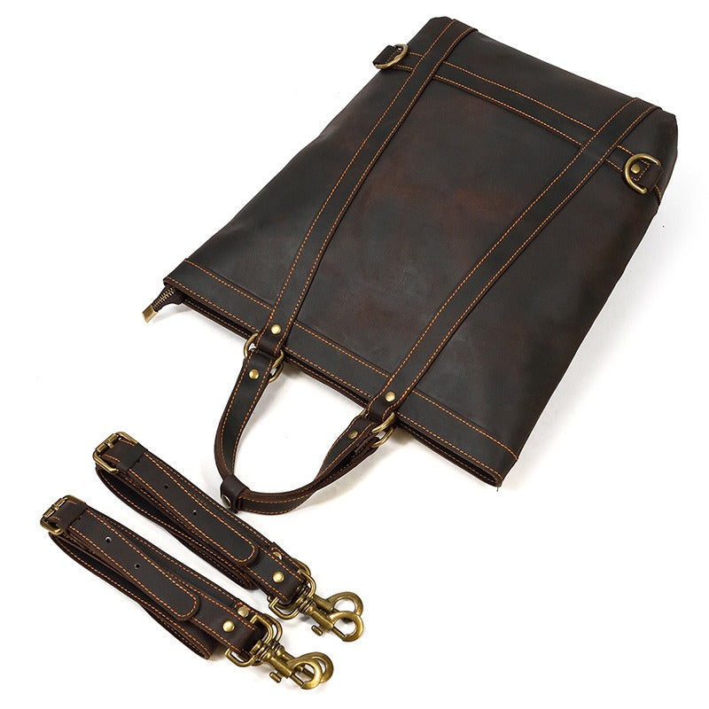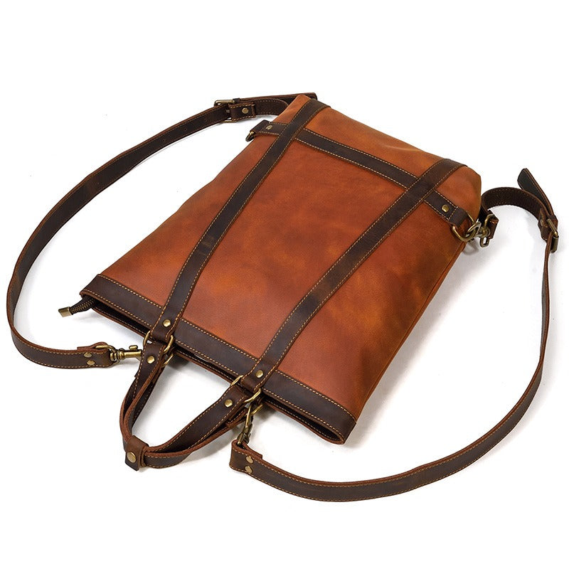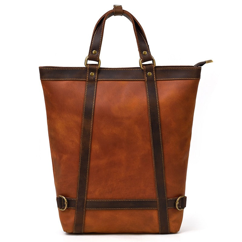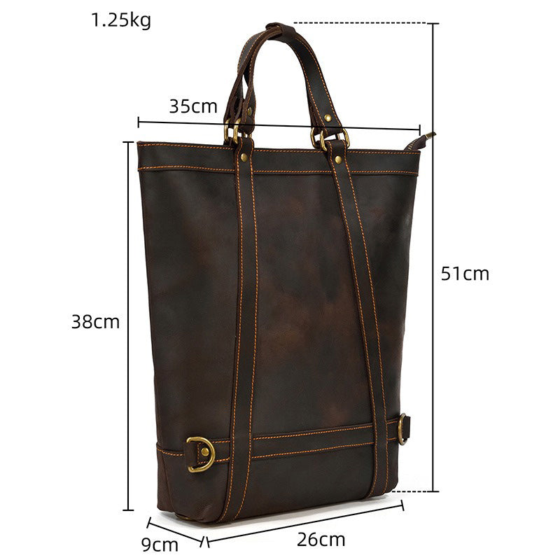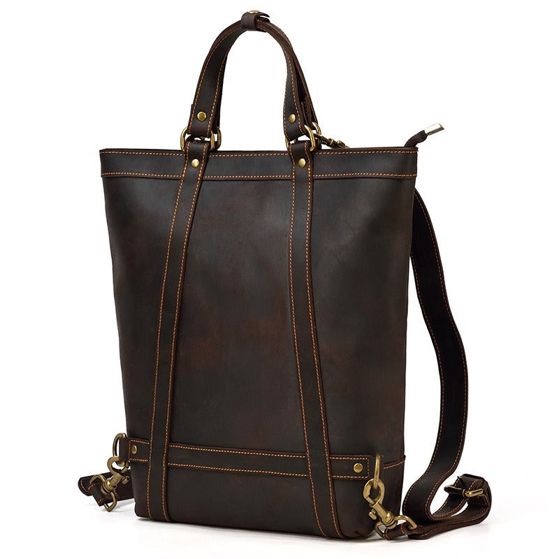 Design: Cool Men's Leather Backpack Coffee Leather Tote Bag Convertible Backpacks Tote Handbag For Men