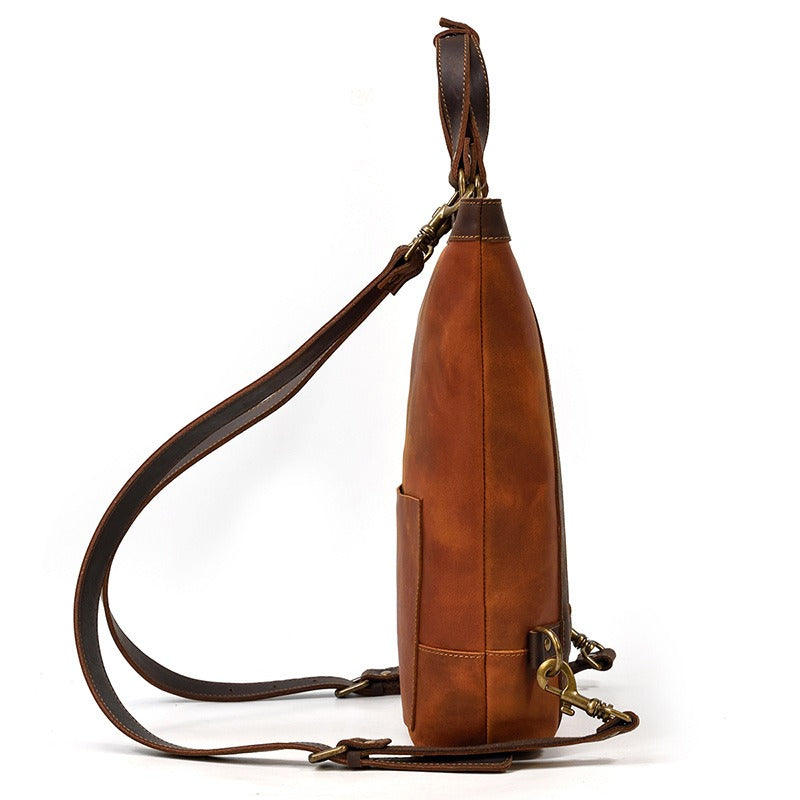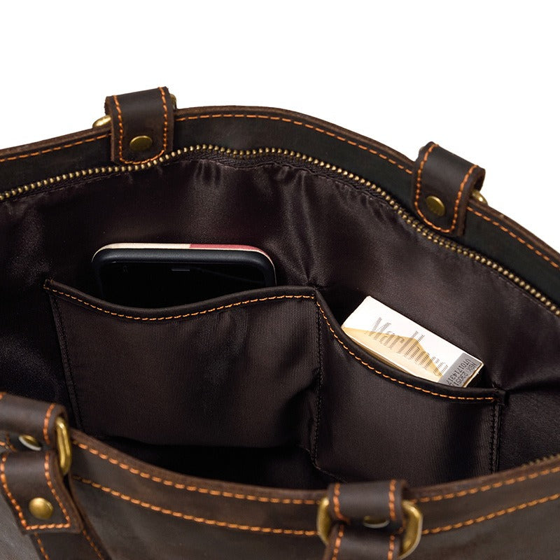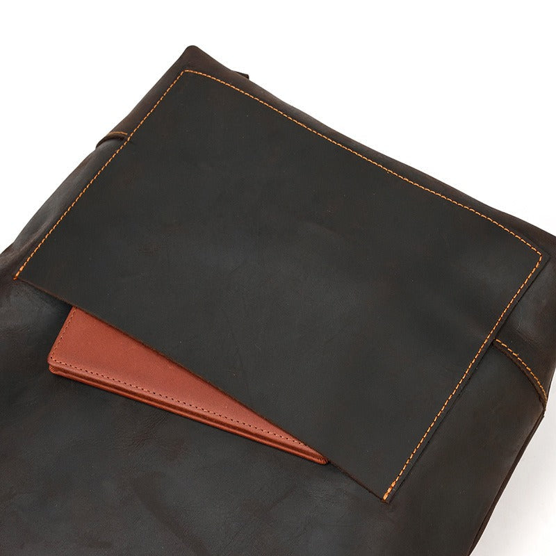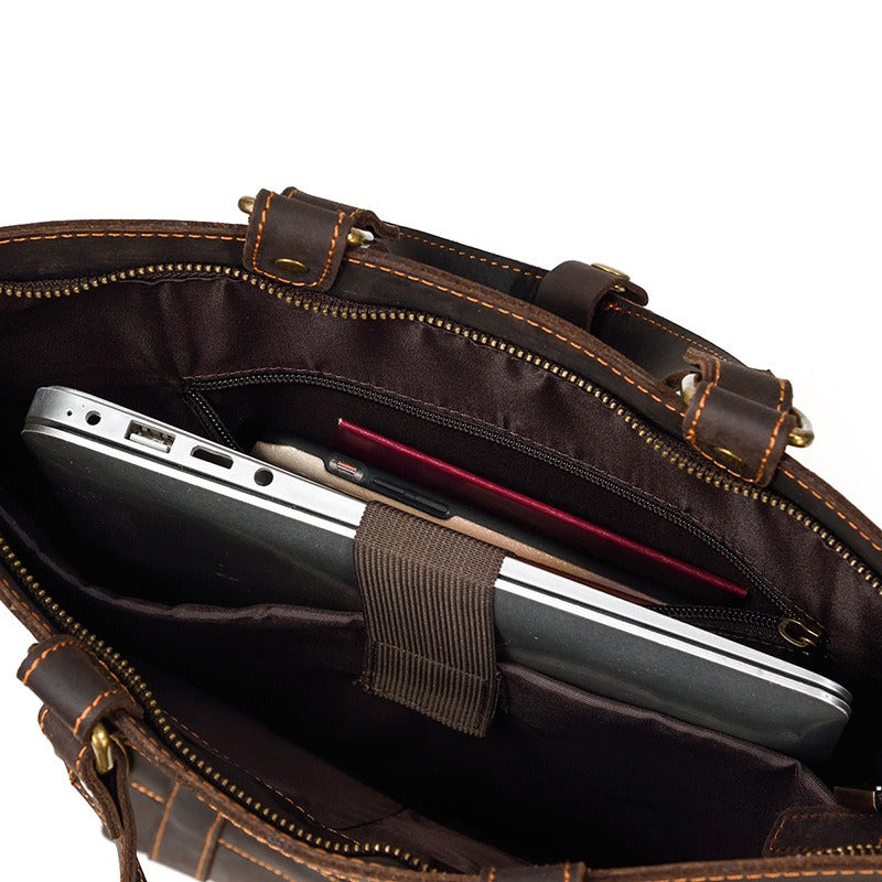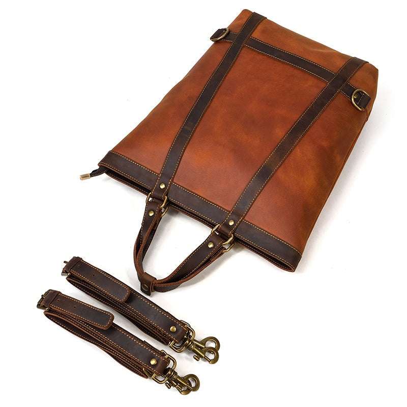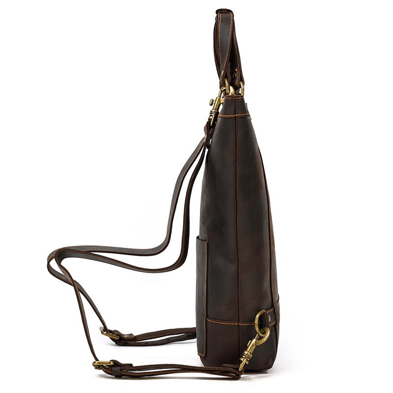 Design: Cool Men's Leather Backpack Coffee Leather Tote Bag Convertible Backpacks Tote Handbag For Men
