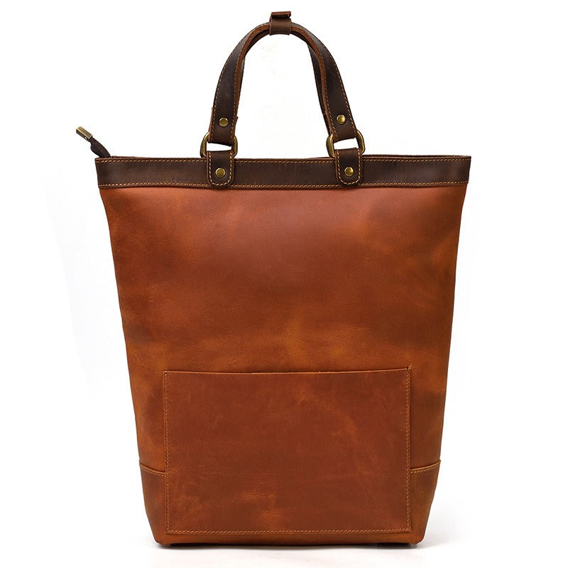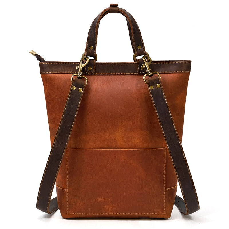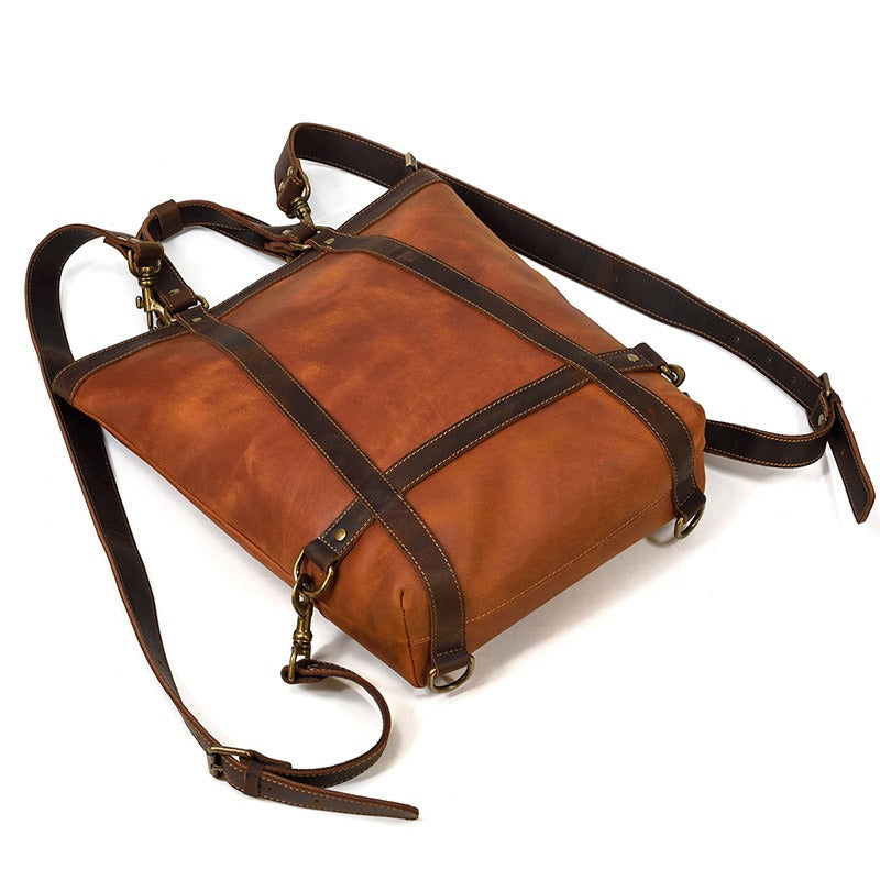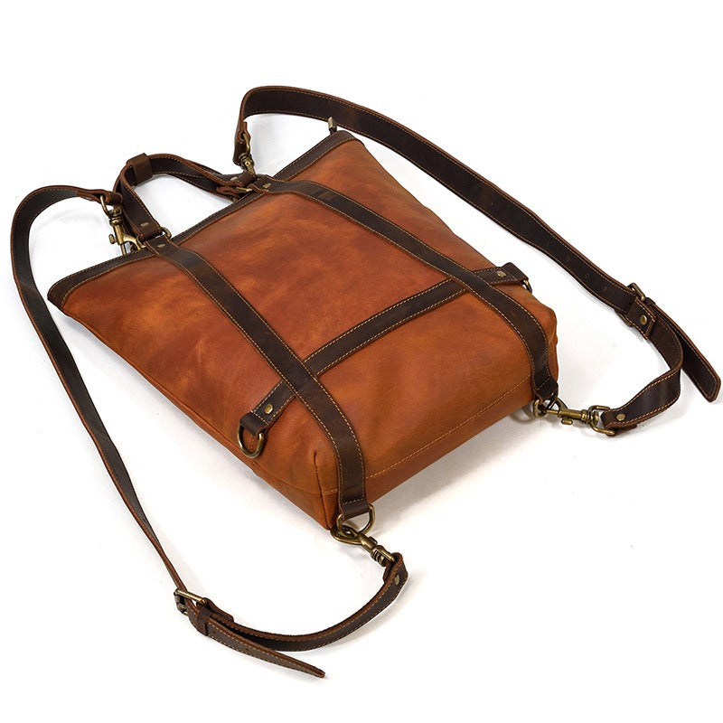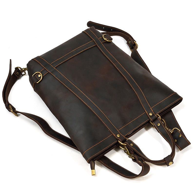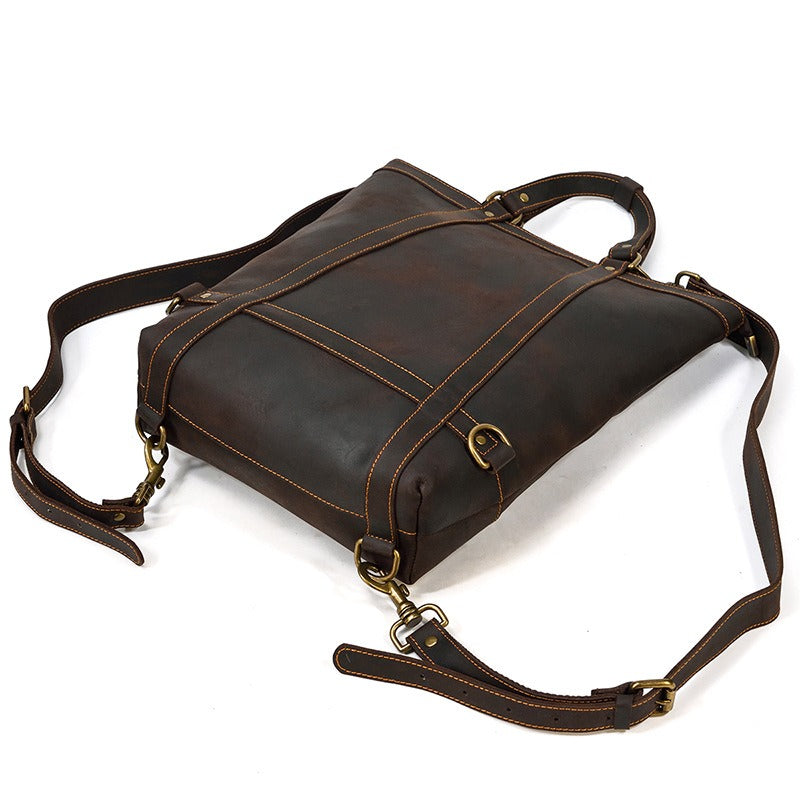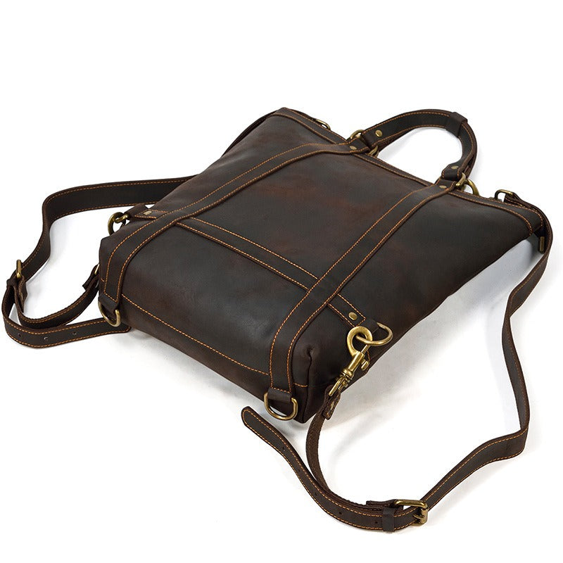 Cool Men's Leather Backpack Coffee Leather Tote Bag Convertible Backpacks Tote Handbag For Men