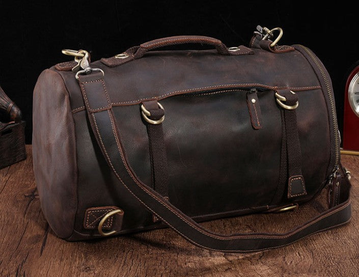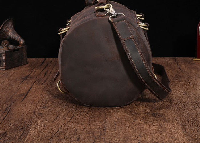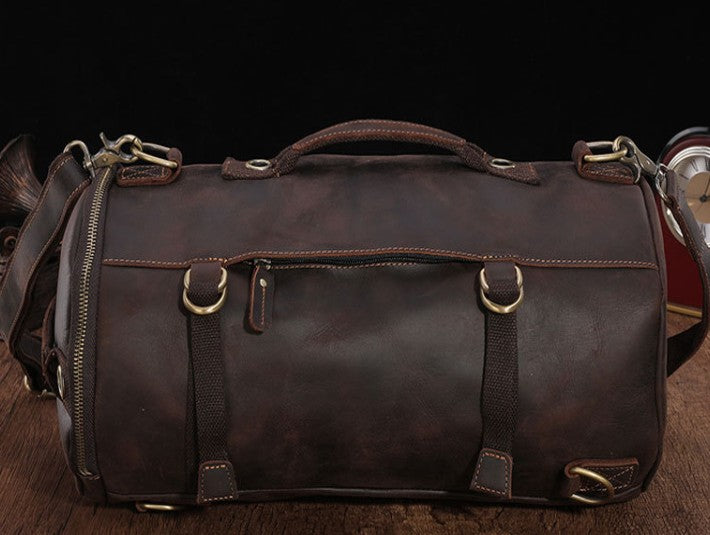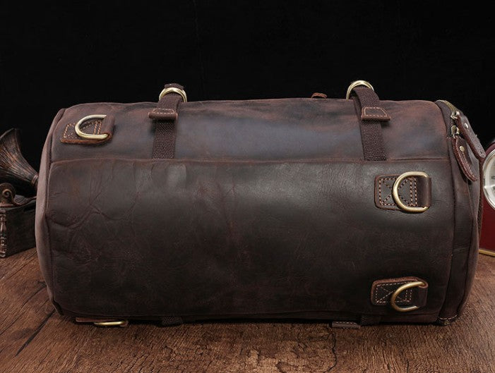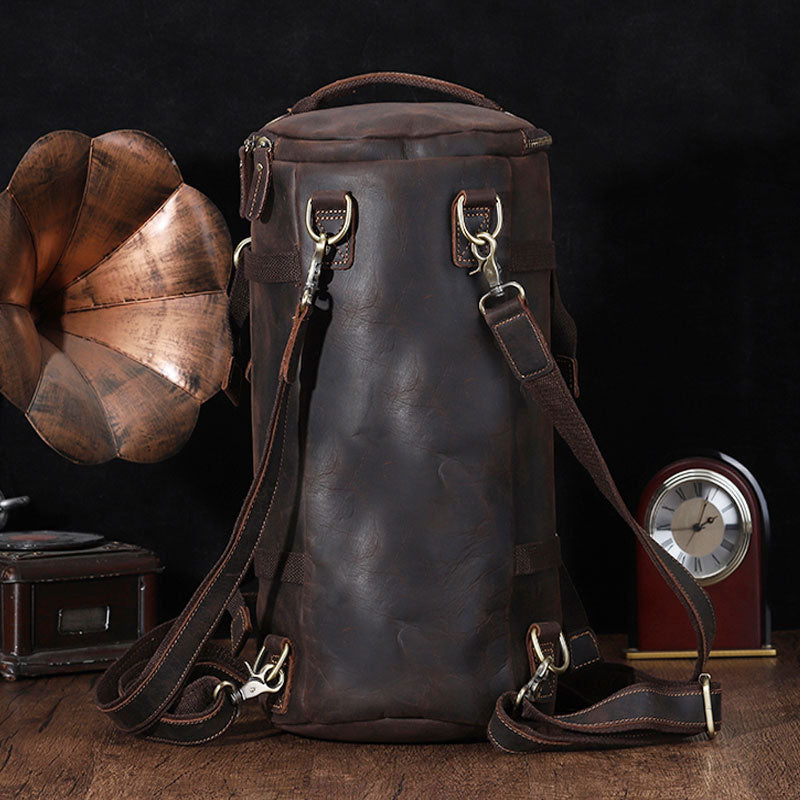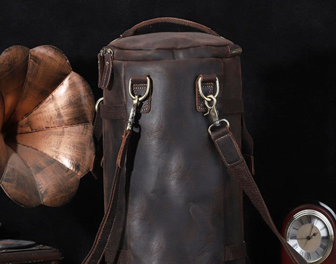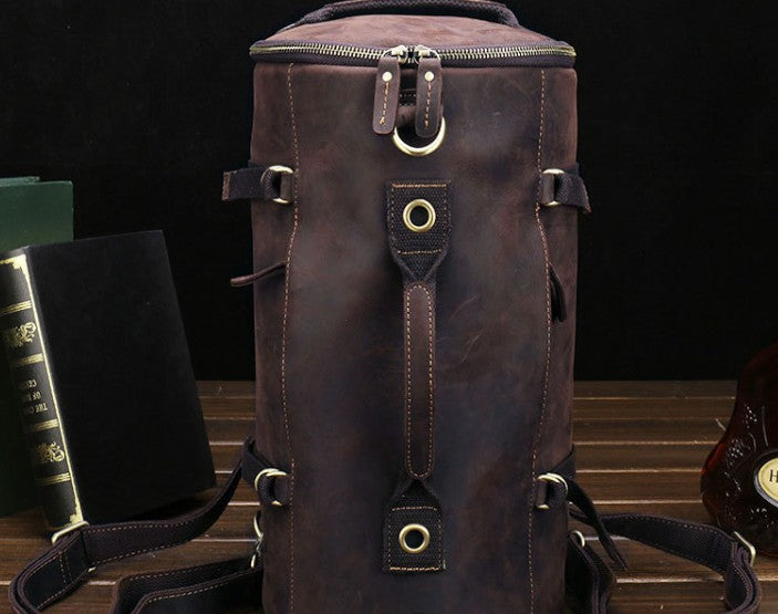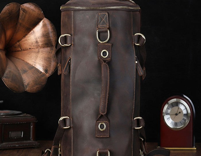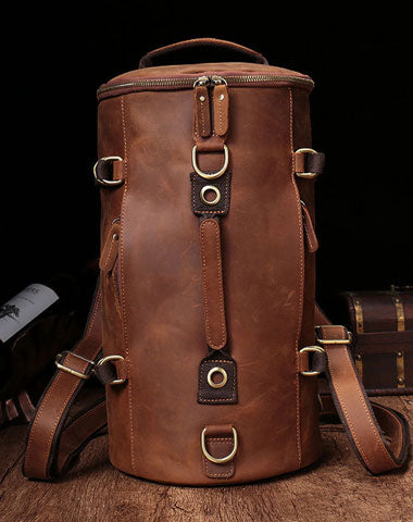 Design: Cool Mens Leather Barrel Backpack Overnight Bag Travel Backpack Weekender Bag for men